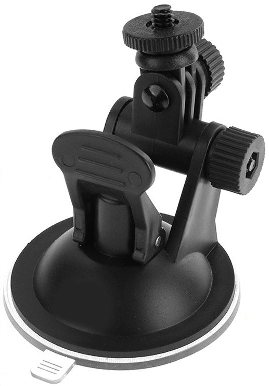 Універсальний тримач автомобілів з 1/4 " закріплений до присосної чашки до windows або іншої гладкої поверхні . Завдяки цьому ви зможете записувати водіння та оточення без проблем без необхідності тримати камеру в руці.