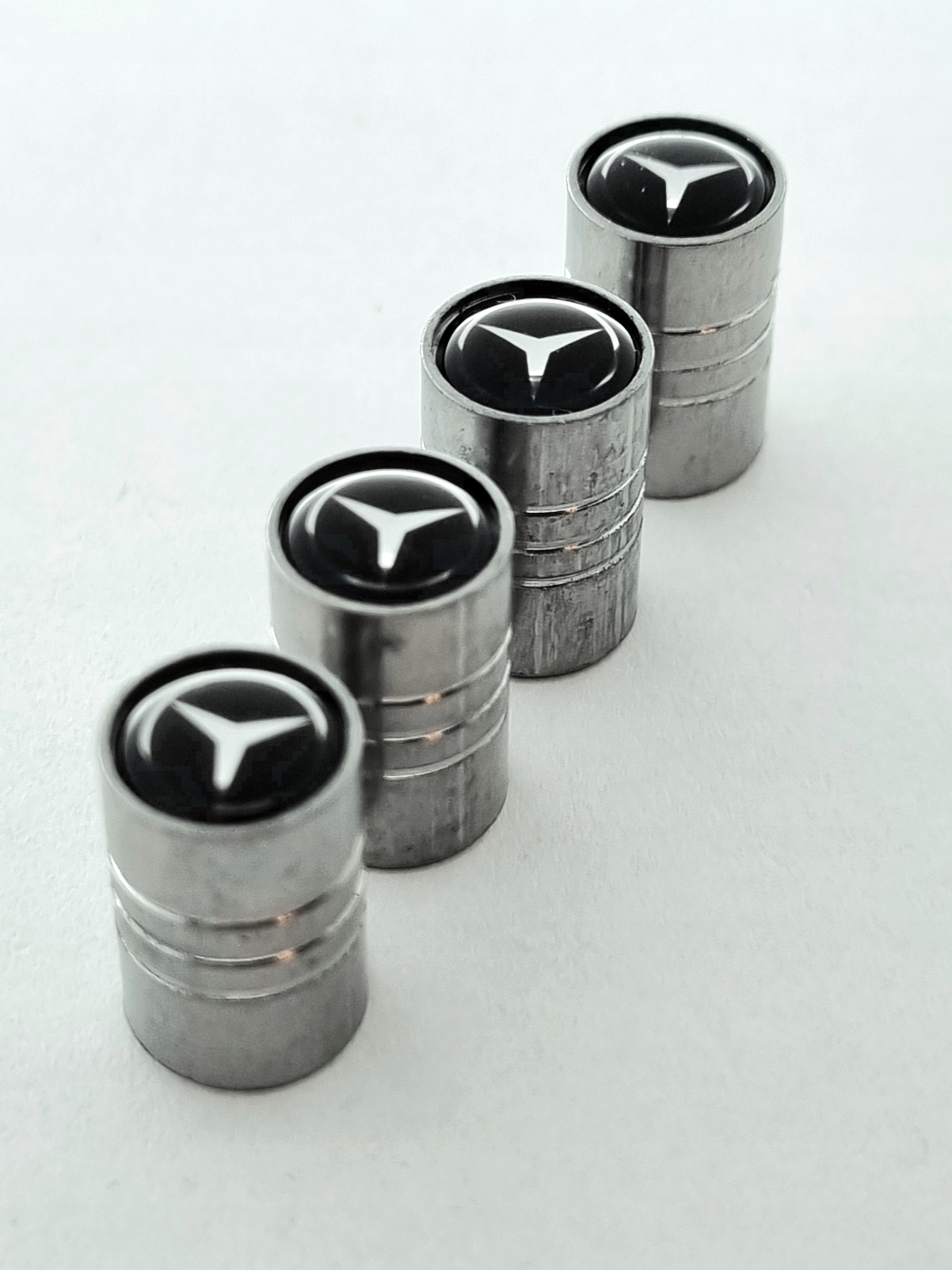 Продається набір сріблястих ковпачків з логотипом Mercedes.