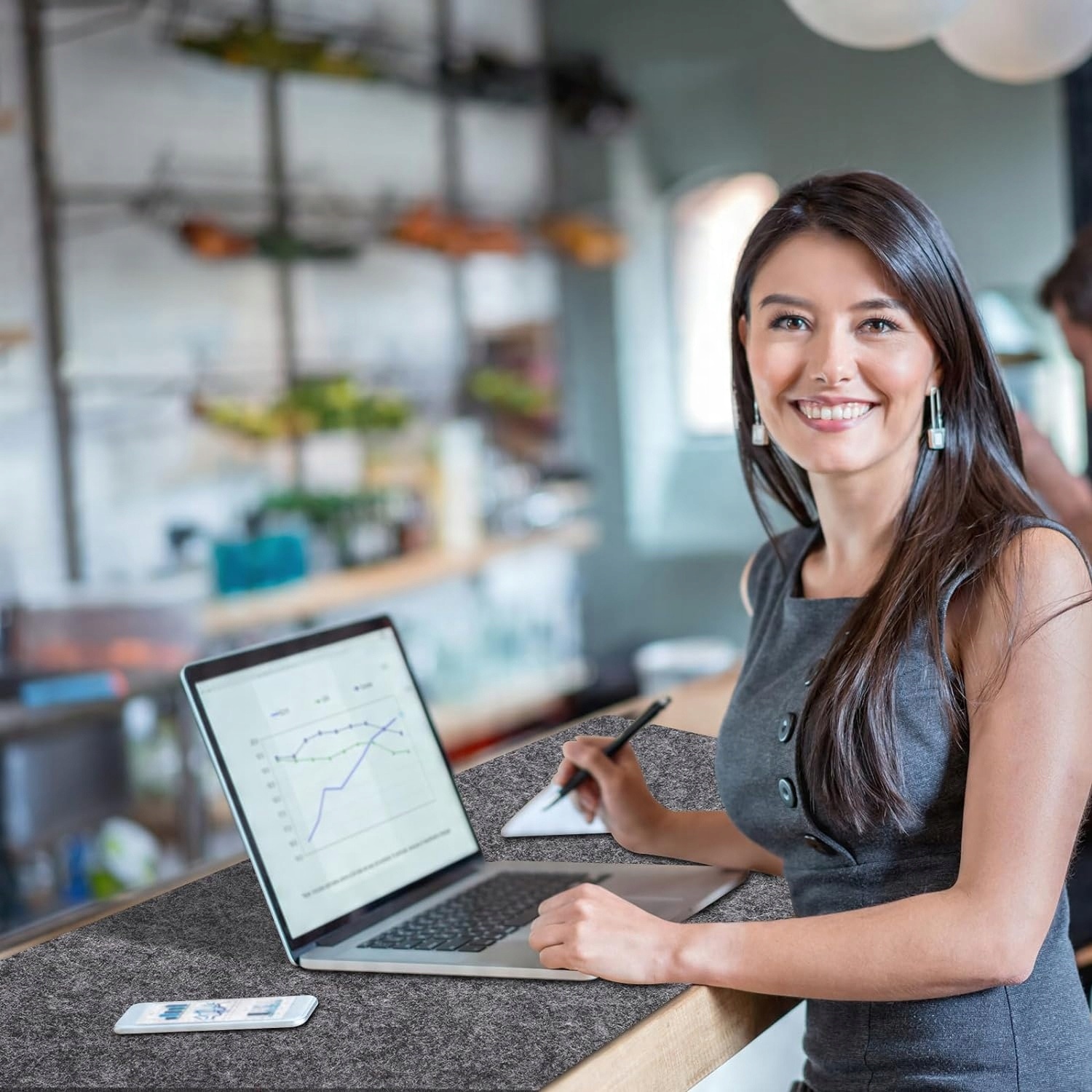 - На столику розмістяться ноутбук, миша та клавіатура, офісне приладдя та чашка кави чи чаю.