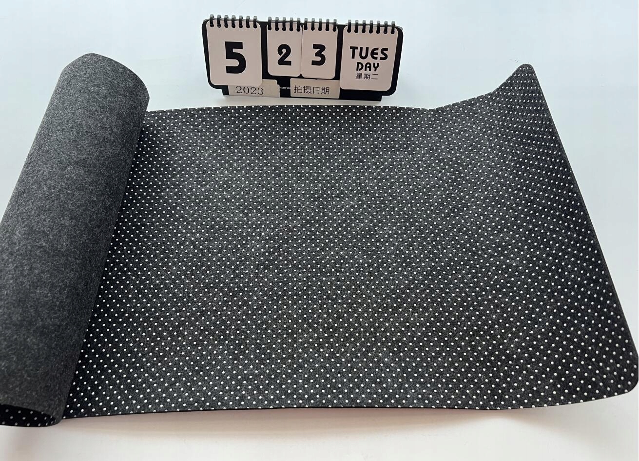 - Після відкриття упаковки покрутіть повстяну настільну підкладку в напрямку, протилежному упаковці, розгорніть його та обережно розгладьте.