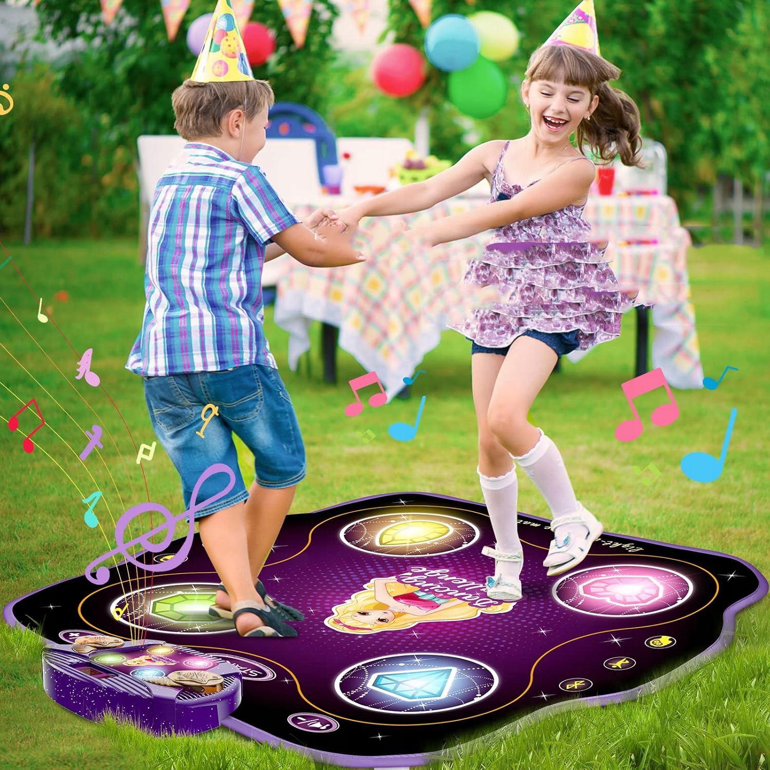 💎💎【Безпечний і нековзкий】Дитячий танцювальний килимок має м’яку м’яку поверхню та дно, наповнене протиковзкими частинками, виготовлений із високоякісного вінілу, нетоксичного та без запаху. На ньому діти можуть вільно танцювати і стрибати. Подушка також водонепроникна. Просто протріть начисто після використання.