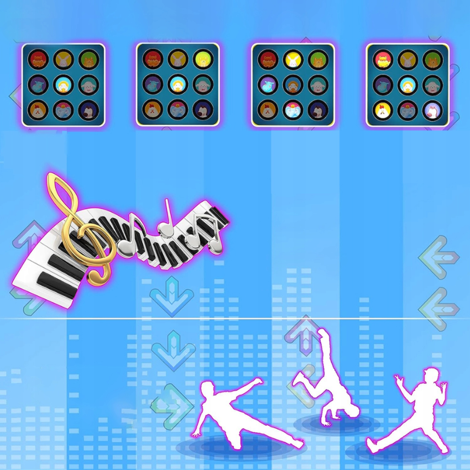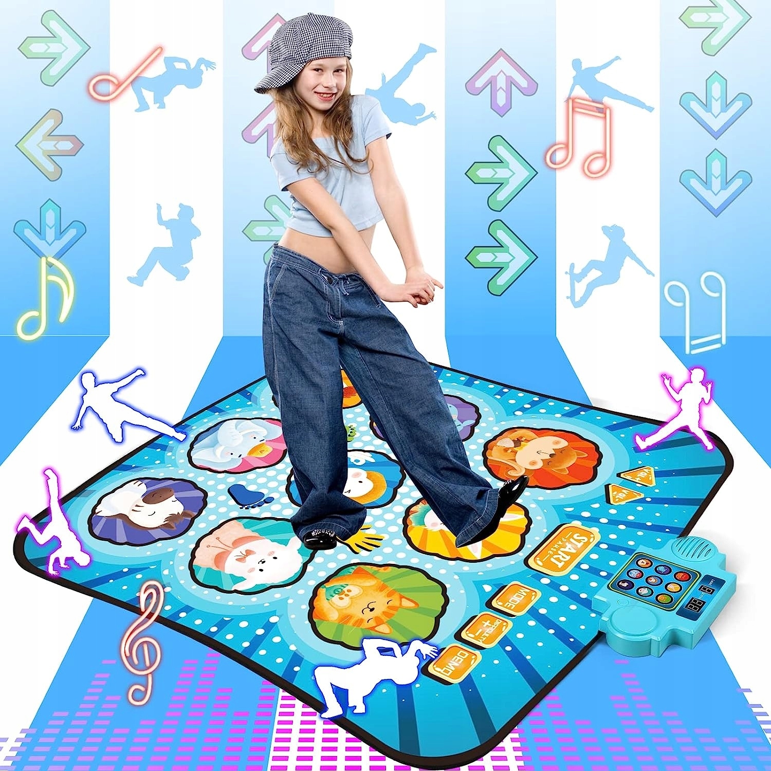 - 🎶Дитячий килимок для танцювальної музики має 8 вбудованих музичних пісень, 4 режими гри, 8 рівнів, 3 рівні складності та регульований гучність .