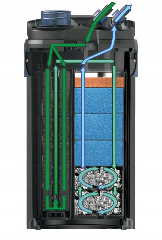 - Фільтрувальні вкладиші, що входять до комплекту, є ідеальним субстратом для нітрифікуючих бактерій