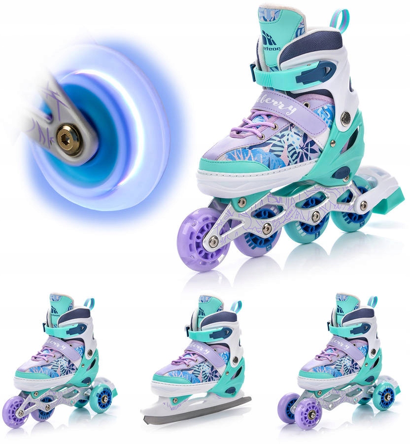 Продукт пропонує аж 4 варіанти конфігурації - ковзани, роликові ковзани, роликові ковзани та роликові ковзани. ковзани, що робить його придатним як влітку, так і взимку, а також взимку.