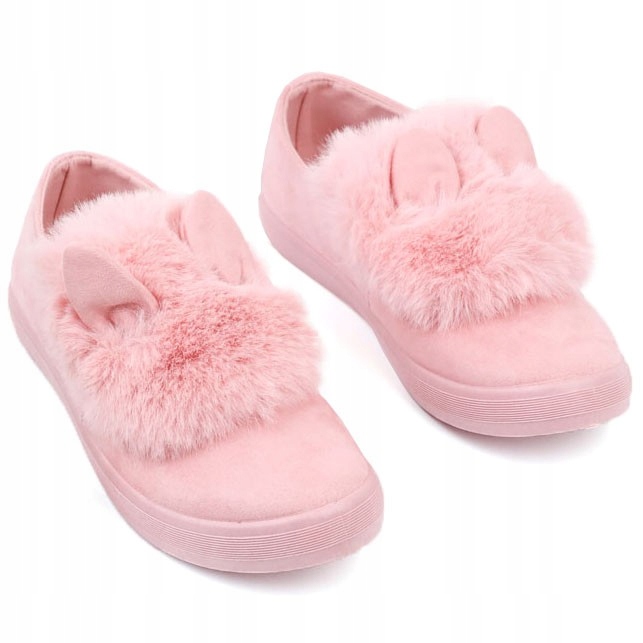 ковзати на жінок на білою товщиною підошвою. Круглий ніс, прикрашений спереду імітацією хутра. Крім того, застосування кролика. Зроблено з Ekozamsz, ковзання -in. Ви будете відповідати їм сукням, штанам, шортам.