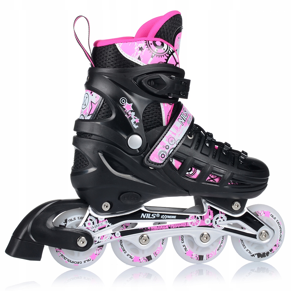 Роликові ковзани NH10905 — це справжнє задоволення від катання. Завдяки можливості переміщення додаткового колеса на задню вісь, роликовий ковзан функціонально перетворюється на роликовий ковзан. Таке рішення допоможе самим маленьким фігуристам зробити перші кроки в цьому виді спорту. У свою чергу, установка додаткового колеса на передню вісь перетворює виріб на роликовий ковзан. Ролик оснащений спеціальним алюмінієвим полозом і гальмом, що забезпечує безпеку під час катання. У свою чергу, колеса та підшипники класу ABEC7 забезпечують нижчий опір коченню, тобто швидшу їзду.