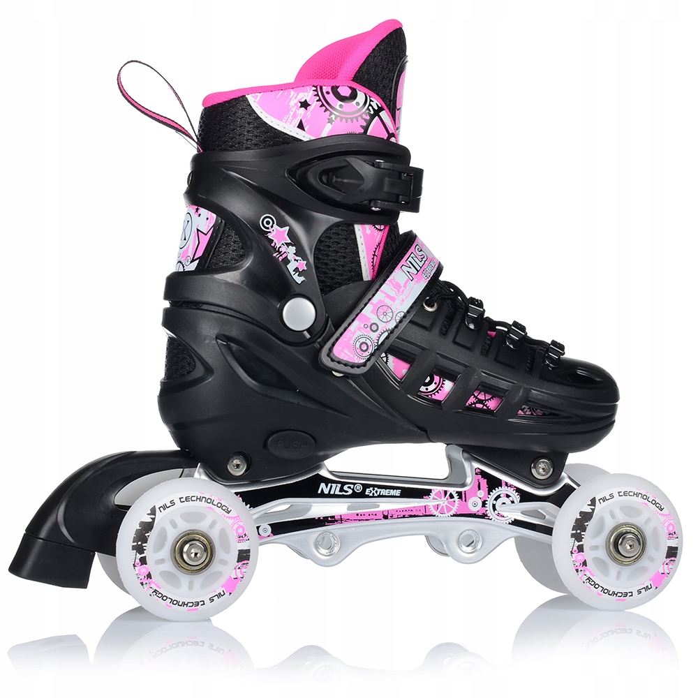 Шукаєте спорядження, яке «росте» разом з вашою дитиною і приносить вам масу задоволення цілий рік? Nils Extreme NH10905 - це регульовані роликові ковзани 4 в 1 - за кілька хвилин ви можете змінити конфігурацію на: ковзани, роликові ковзани, роликові ковзани або роликові ковзани. Додатково є світлові світлодіодні колеса та стійка конструкція, яка добре тримає ногу.