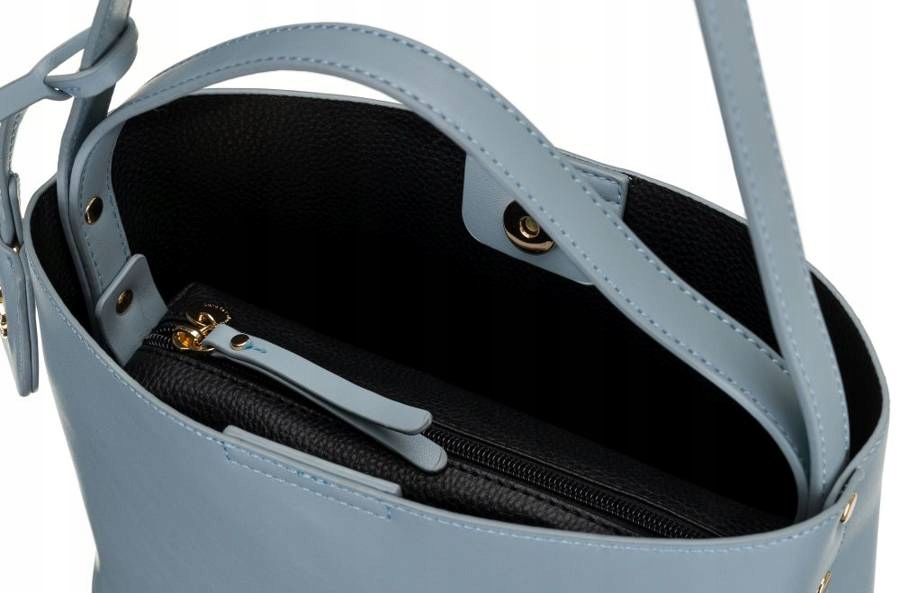 Сумка має одне відділення, що закривається на магнітну кліпсу. Всередині є вставка на блискавку, всередині якої є одна кишеня для дрібниць.