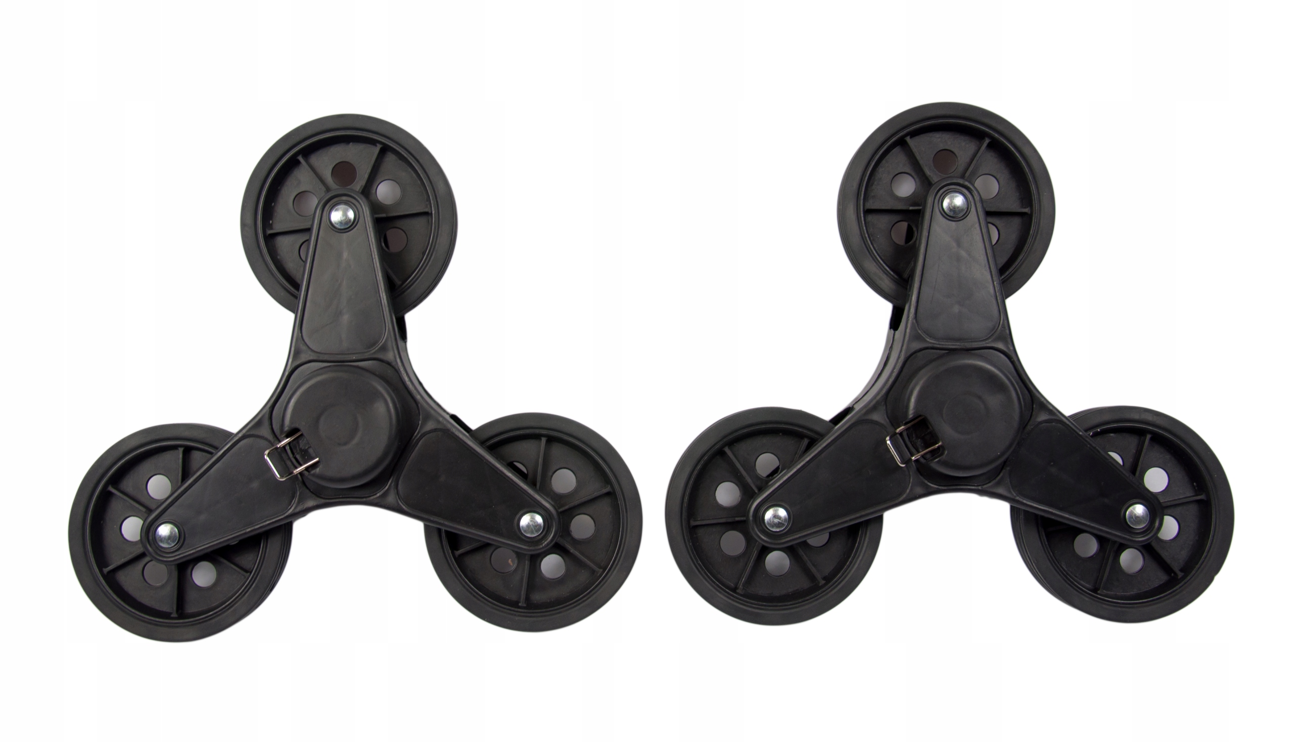 ✅ 2 типи коліс у комплекті: потрійні поворотніколеса з підшипниками (ідеальні, напр. для сходи) та стандартні пінопластові колеса