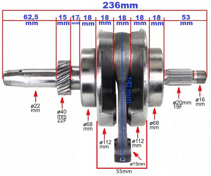 Вал дуже добре та міцно виготовлений із високоякісної сталі відповідно до заводських розмірів та якісно кращого стандарту порівняно з оригінальним продуктом. Підвищена термостійкість конструкції, посилений кривошип і якісні підшипники значно стійкіші до різного роду важких умов або перегріву. Деталь оригінальна, тому підходить без доробок. Завдяки перевіреній високій якості забезпечує тривалу та безперебійну роботу.