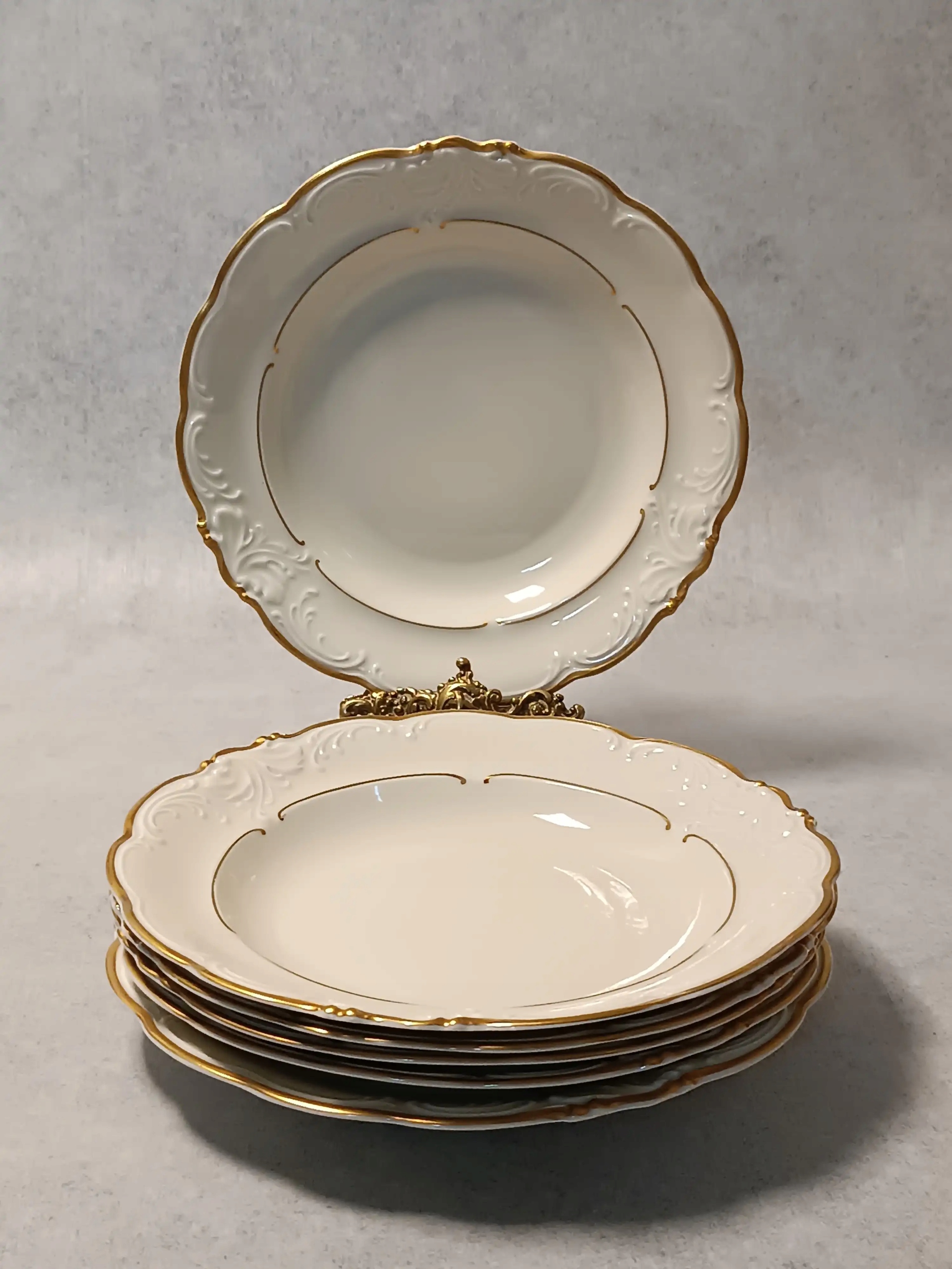 Краї тарілок оброблені золотою смугою
