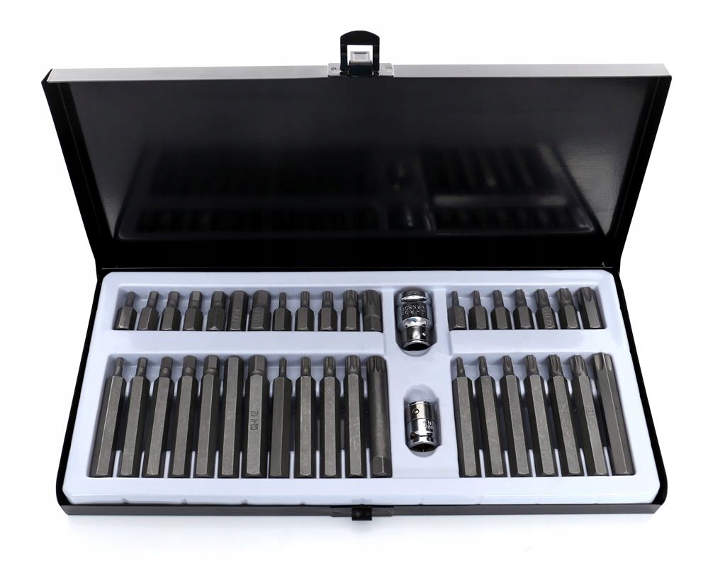 Різноманітність насадок дозволяє виконувати багато робіт у спеціалізованих механічних та автосервісах. Наконечники мають дві довжини: 30 і 75 мм, встановлені в шестигранний тримач 10 мм, адаптований для роботи з тріскачкою 1/2" і 3/8".