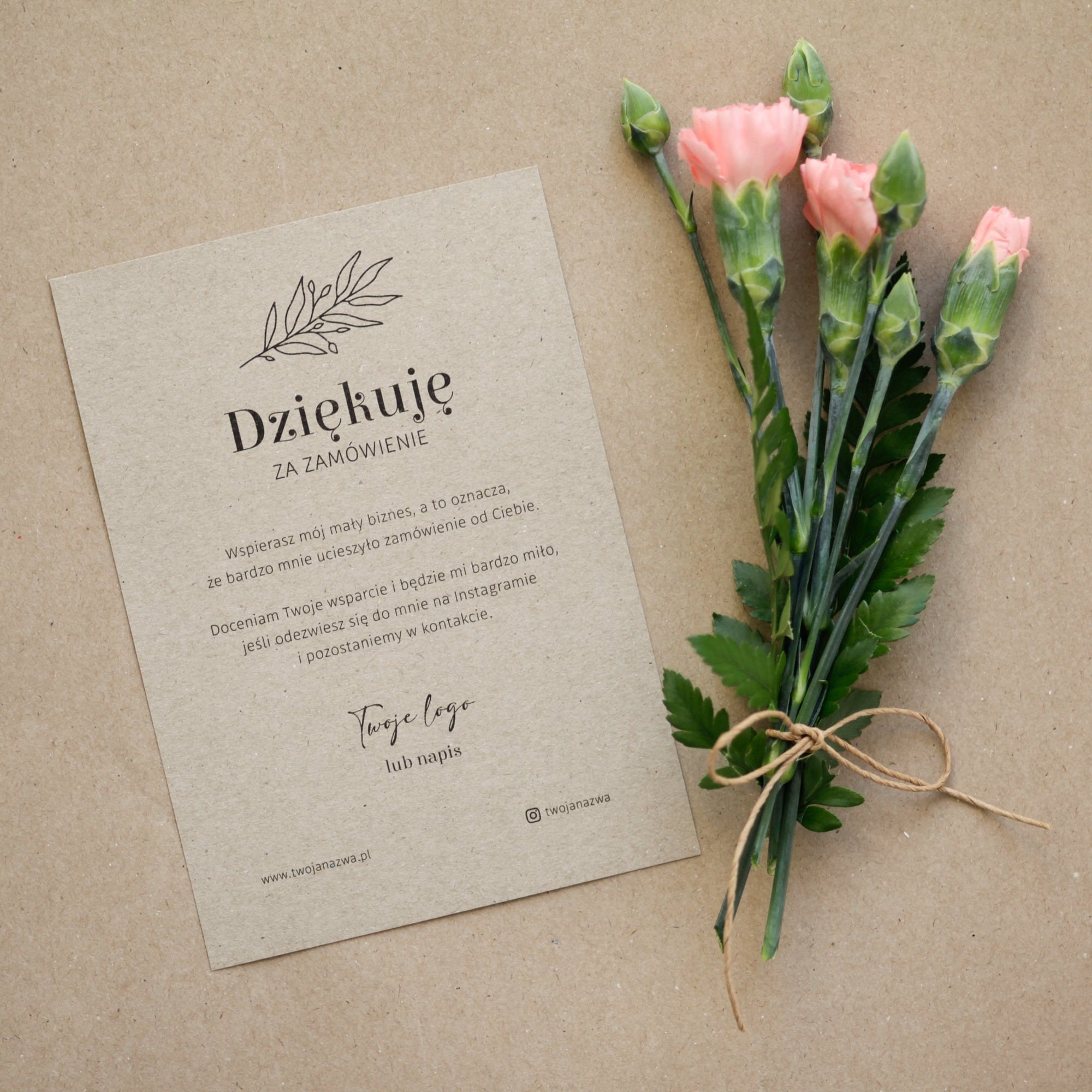 - Чорний друк із вашим логотипом і адресою вибраного веб-сайту чи соціальної мережі. Вміст подяки можна змінити.