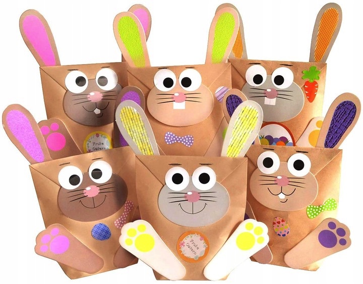 КРАФТОВІ ПАСХАЛЬНІ СУМКИ для подарунків DIY ЗАЄЦЬ 12 ШТ.