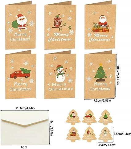 - 【Красиві листівки】: Масові різдвяні листівки відповідають вашим потребам у доставці теплих привітань друзям і родині завдяки 6 різдвяним листівкам, 6 конвертам і 6 різдвяним наклейкам.