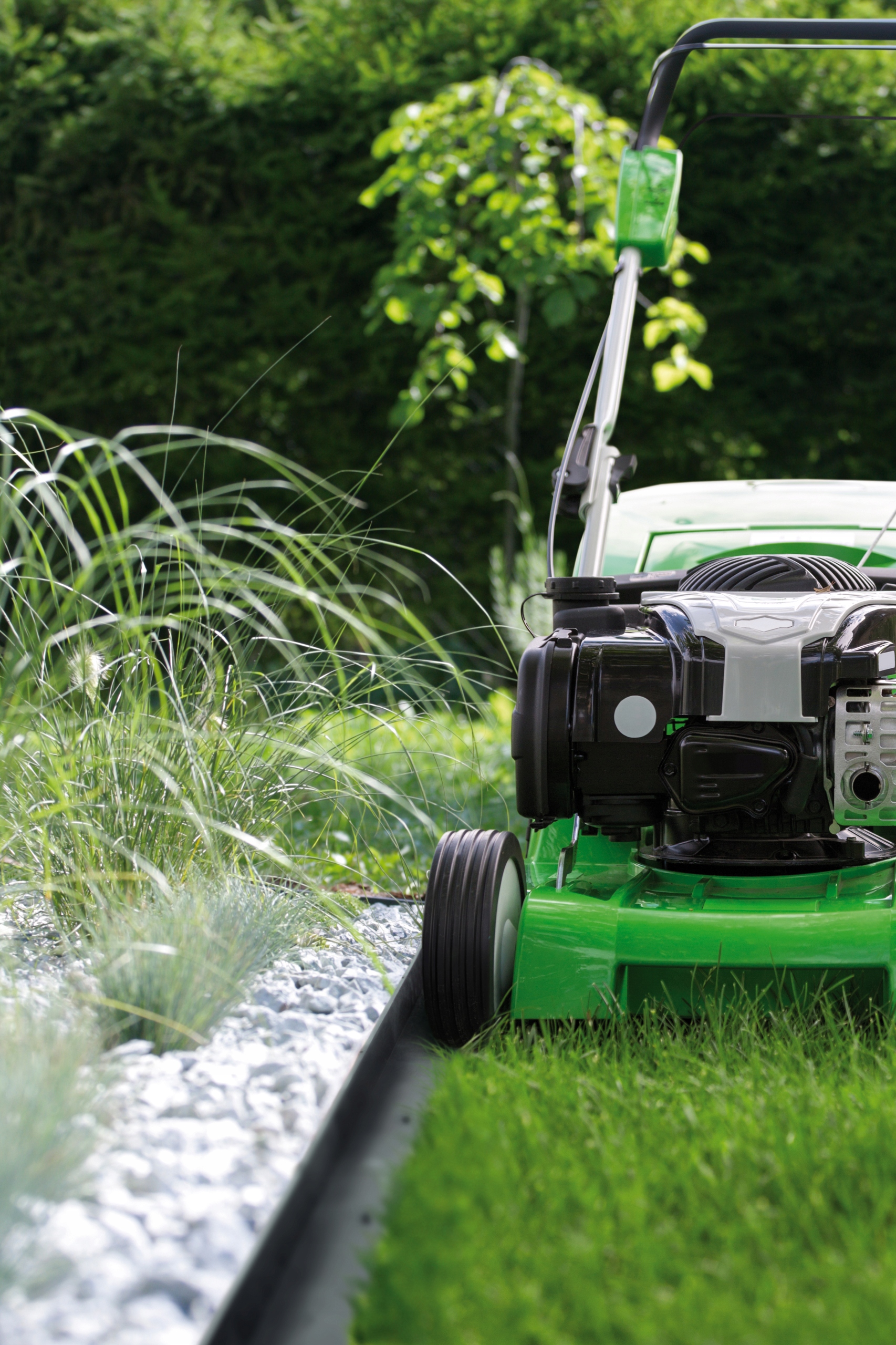 Поперечний край має форму кута, завдяки чому ми можемо косити траву прямо біля краю, переміщаючись двома колесами мотокоси по частині краю, що лежить на землі, без необхідності додаткового використання тримера. Бордюр CornerRIM 55 також використовується як стрічка навколо будівель, яка тримає декоративний камінь, бруківку або решітку GardenPUZZLE, встановлену безпосередньо біля фасаду будівлі. Захищений законом продукт.