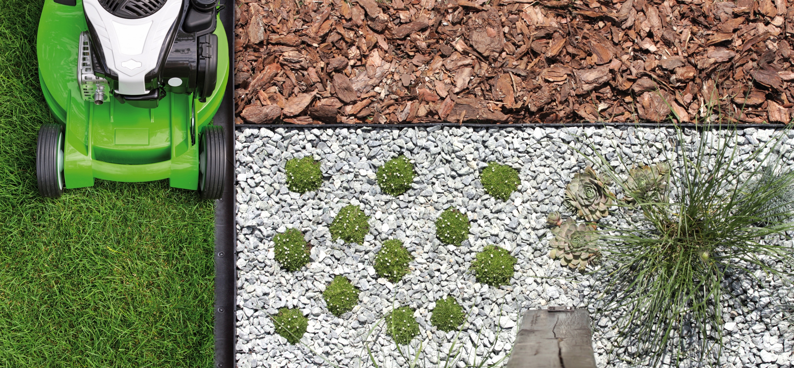 Садова окантовка виготовлена з 100% переробленого пластику. Завдяки унікальному дизайну та вбудованій системі монтажу кромка CornerRIM 55 має багато застосувань.