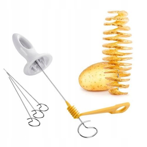 - У набір входить: Набір «Картопля» включає: спіральний різак з надзвичайно гострим лезом, масивною ручкою з гачками для кріплення картоплі та 4 шпажками з нержавіючої сталі.