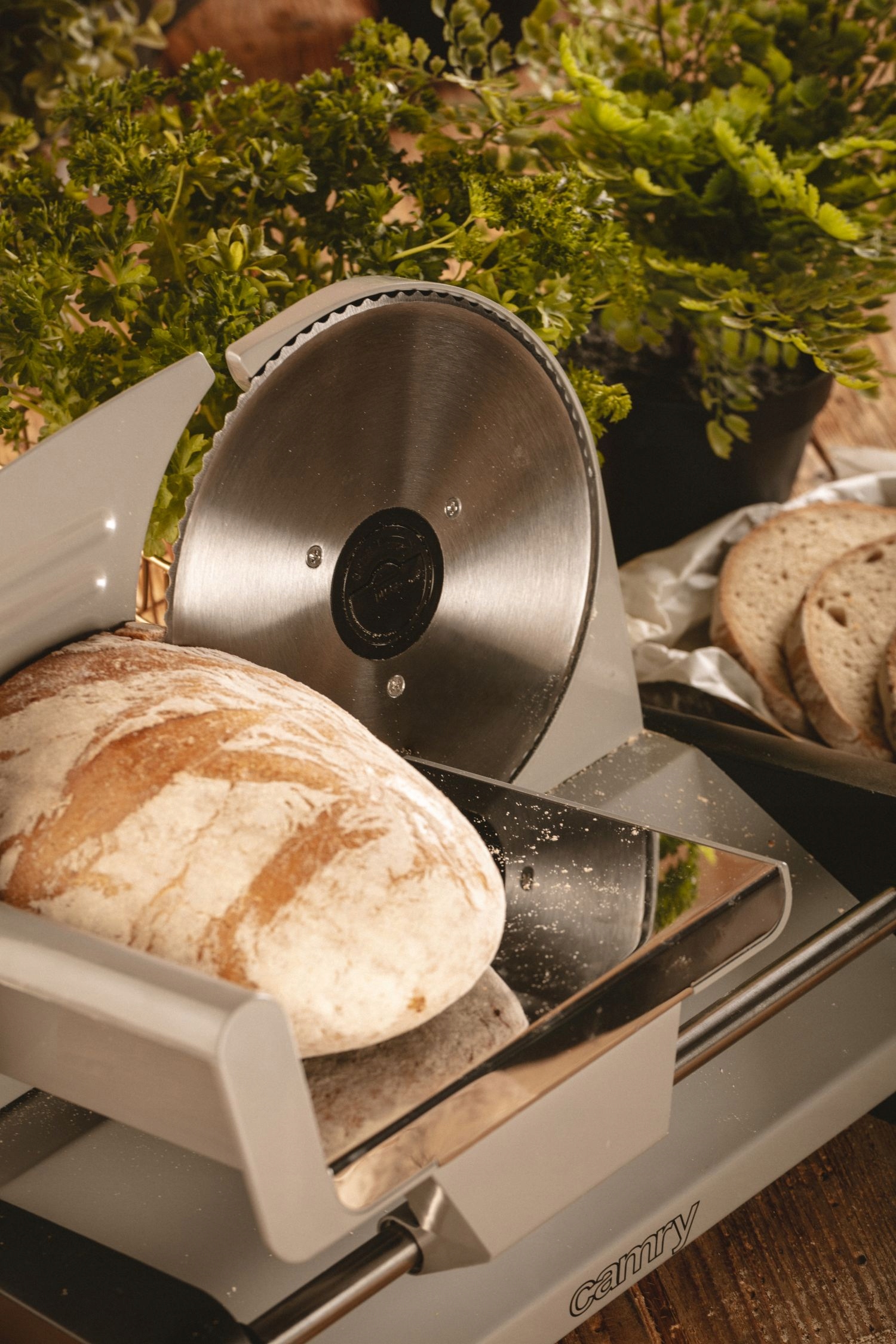 Сільний металевий слайсер із зручним поворотним столом і знімним штовхачем. Висока якість Лезо з нержавіючої сталі дозволяє нарізати м'ясо тонкими скибочками і нарізати міцний шматочок сільського хліба. Товщину нарізки можна вільно регулювати, що полегшується завдяки чіткому індикатору поточного налаштування.