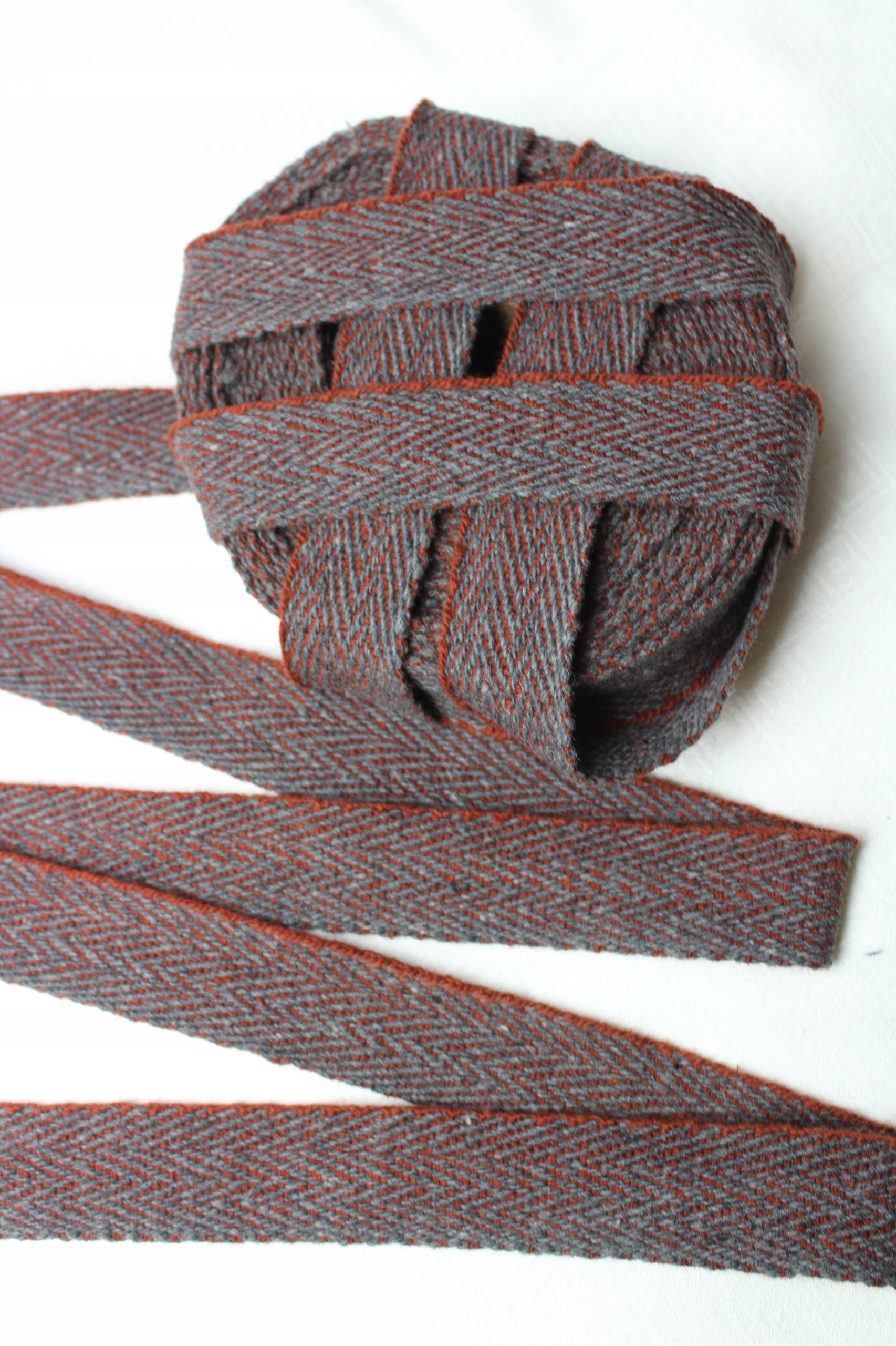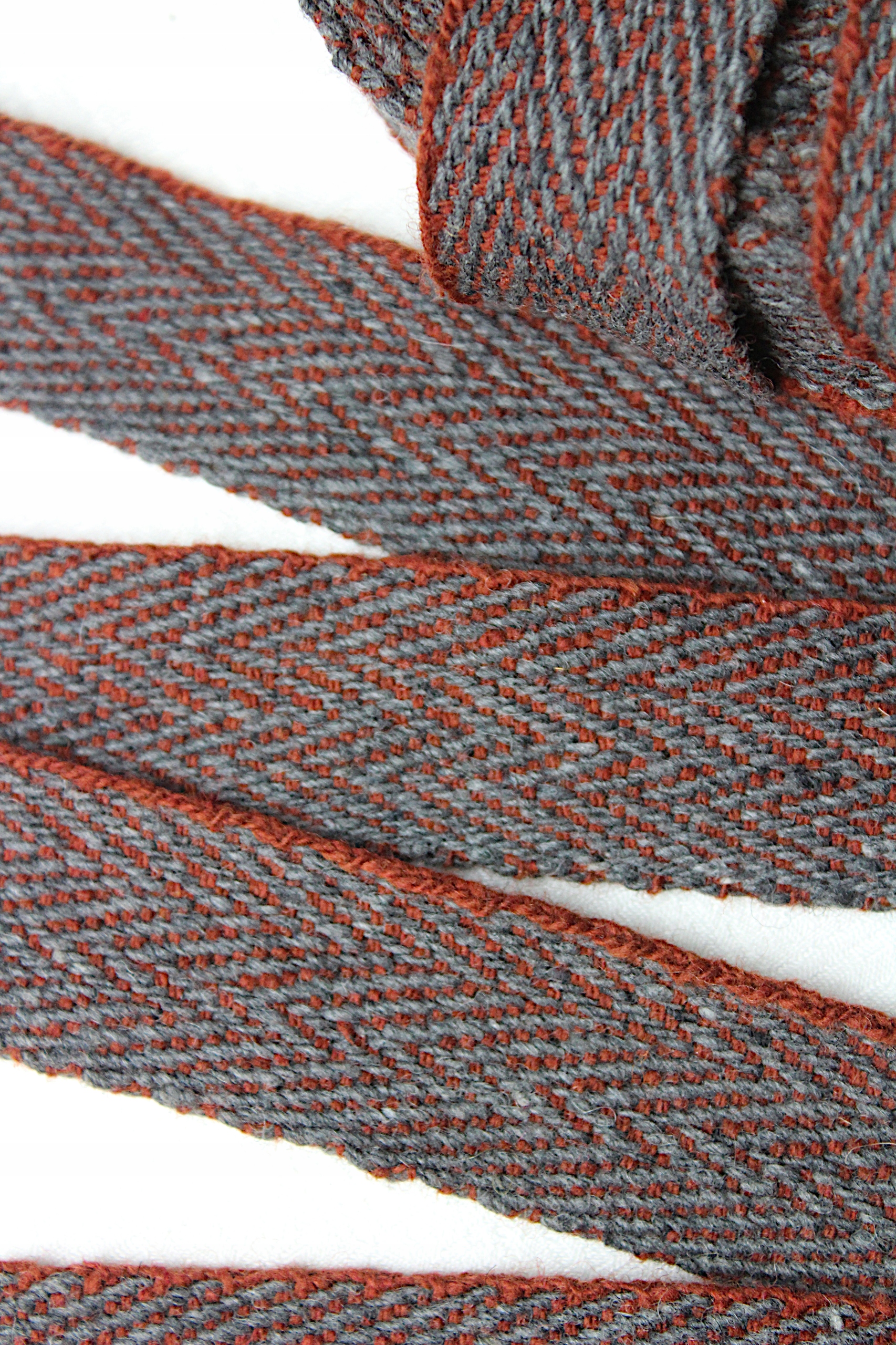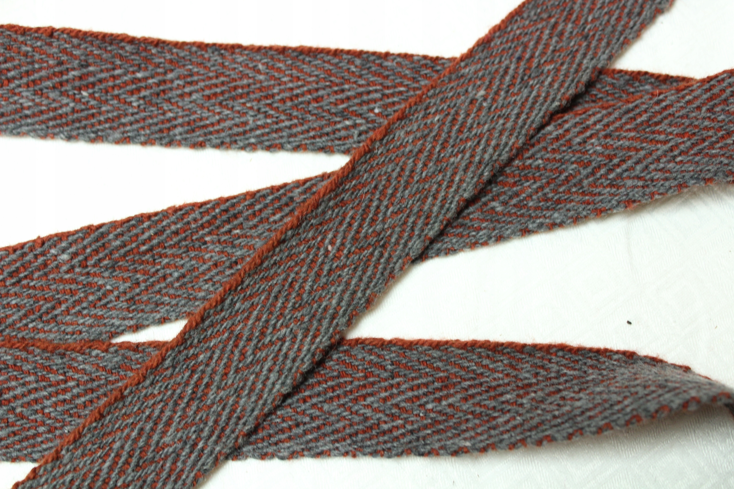 Krajka 3 cm jodełka Ręcznie Tkana 1mb SZARO-CZERWONA 100% WEŁNA