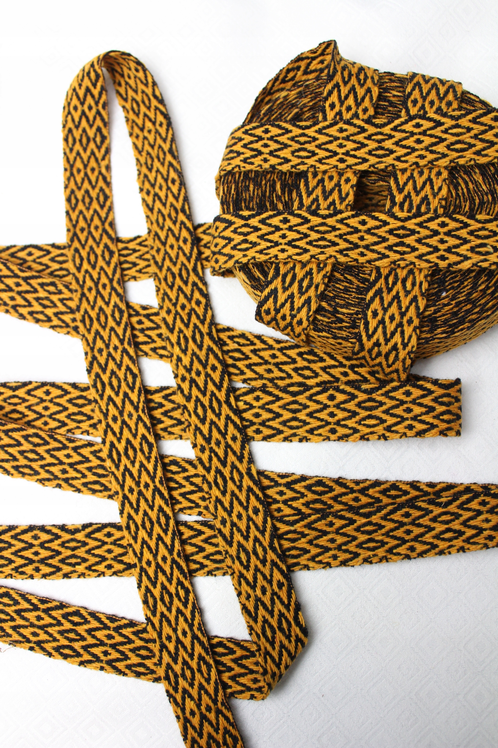 Krajka wełniana 24 mm DIAMENT Ręcznie Tkana 1mb ŻÓŁTO-CZARNA 100% WEŁNA