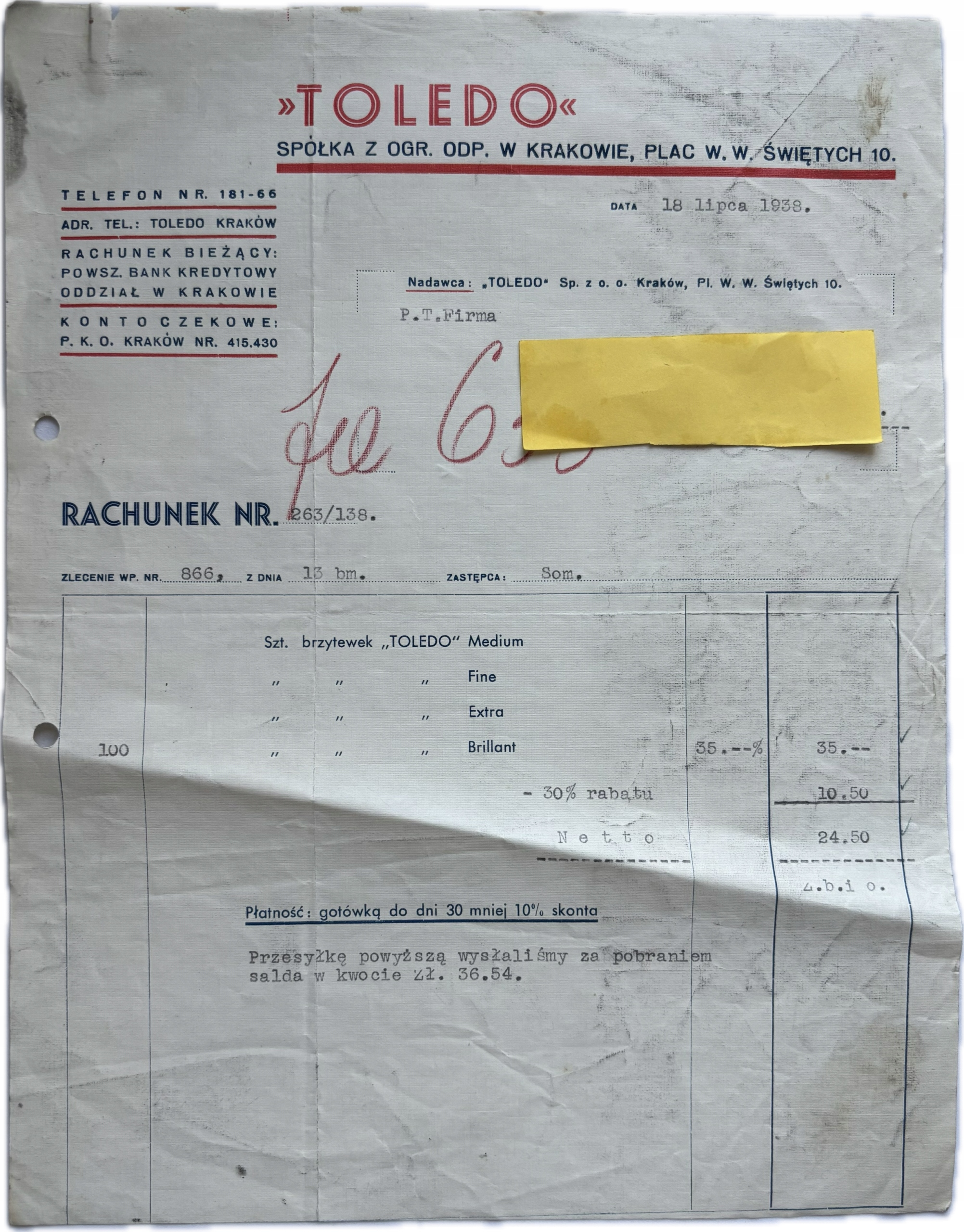 Заказывая «КРАКОВ ТОЛЕДО БРИТВЫ ЛЕЗВИЯ ДЛЯ БРИТЬЯ BILL» данное изделие из «Счета-фактуры и счета» вы можете быть уверены, что после оформления заказа, доставки в Украину, вы получите именно то, что заказывали, в оговоренные сроки и европейского качества.