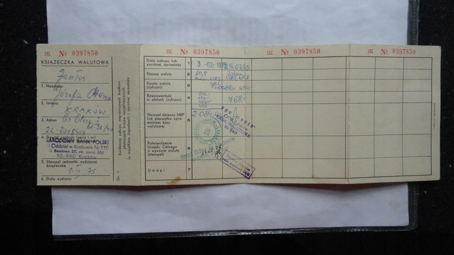 КРАКІВСЬКА ГРАШОВА КНИЖКА 1975 ДЕРЖАВНЕ МИТТО