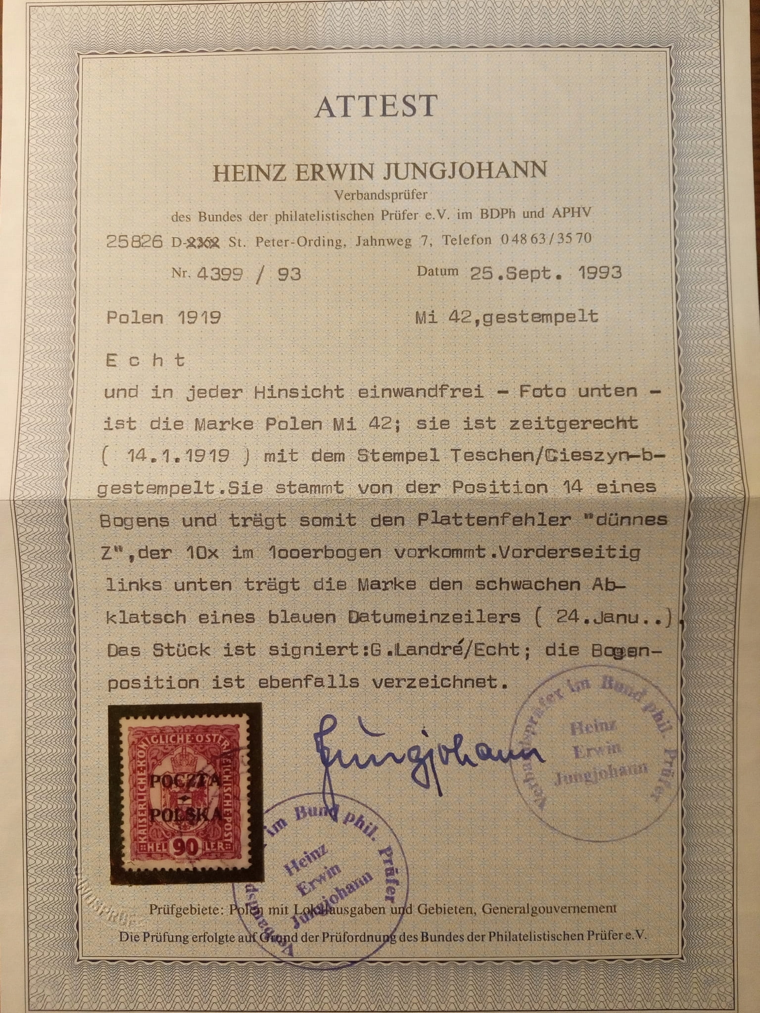 KRAKOWSKIE Fi 44 B1 1919 Jungjohann сертифікат