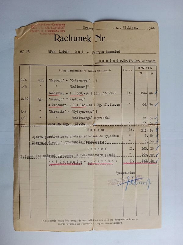 KRAKÓW RANIŻÓW DUL FARBYKA LEMONADE BILL 1942 R 0398 D