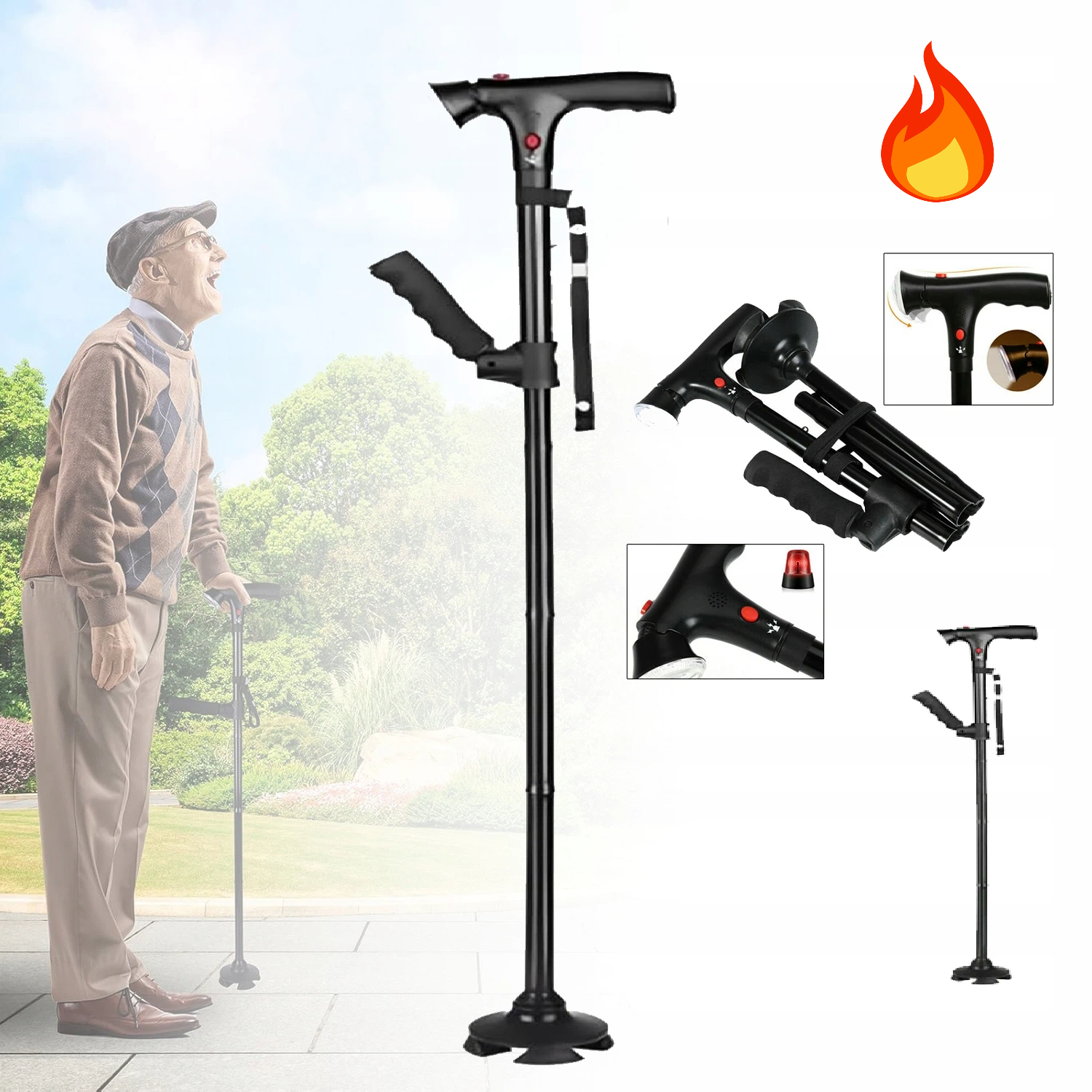 Складається так само легко, як парасолька, а нейлоновий ремінь полегшує зберігання. Ідеально підходить для подорожей або подорожей на приватному автомобілі. Просто відпустіть засув, і тростина автоматично розгорнеться.