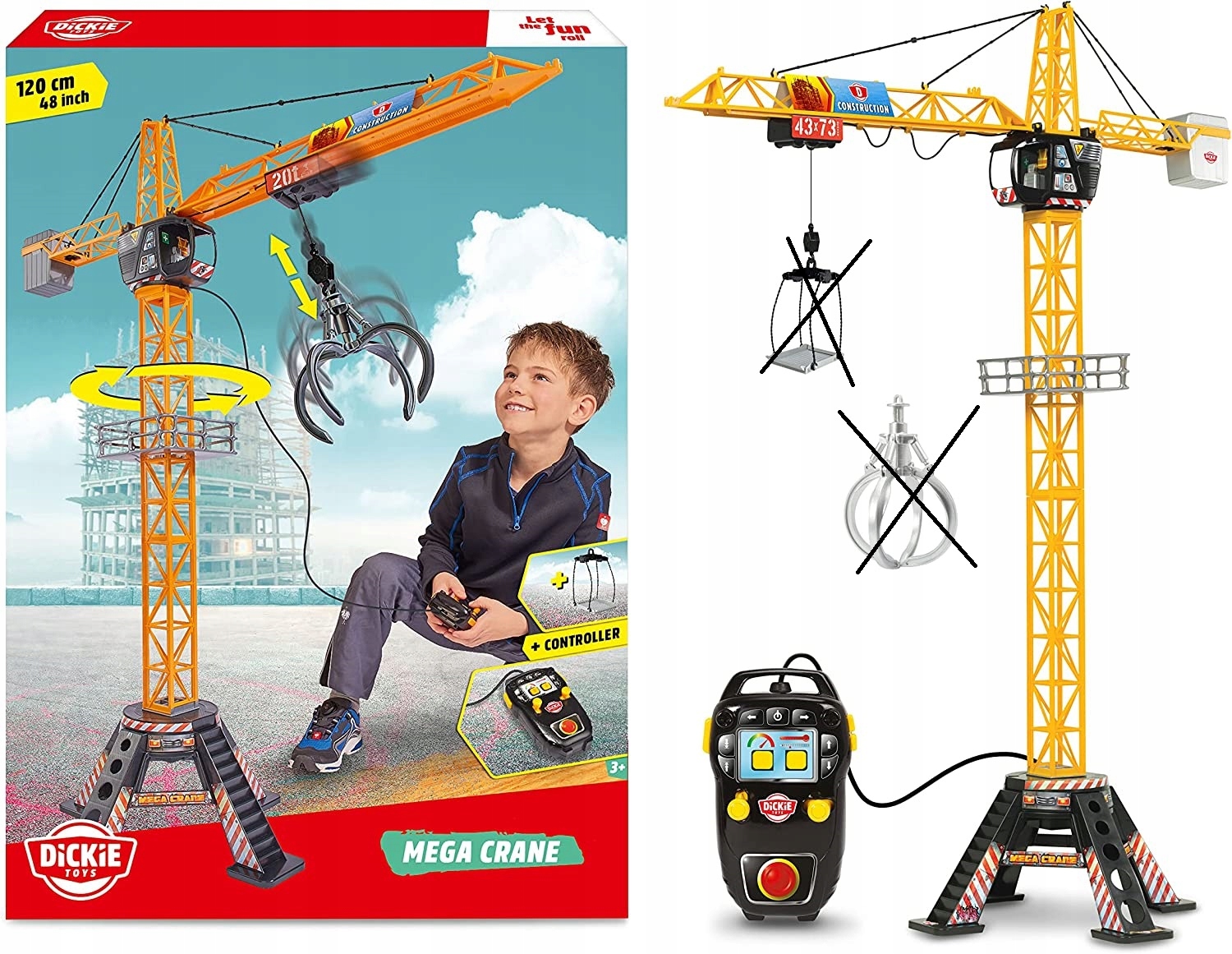 - Гра у форматі XL – баштовий кран заввишки 120 см є абсолютною привабливістю на будь-якому будівельному майданчику, він може легко перевозити м’які іграшки, кубики, фігурки, невеликі машинки та інші іграшки .< /li>