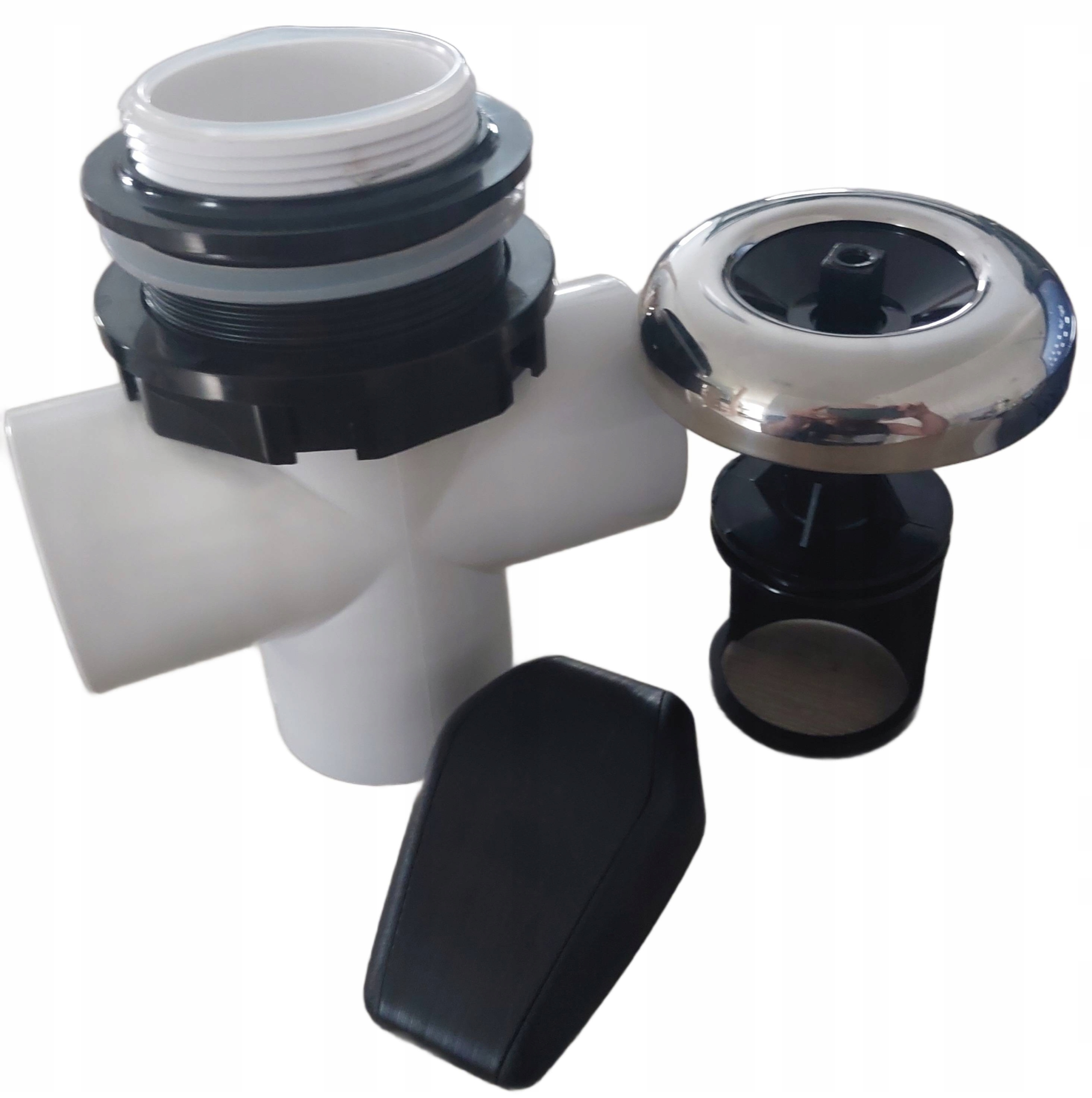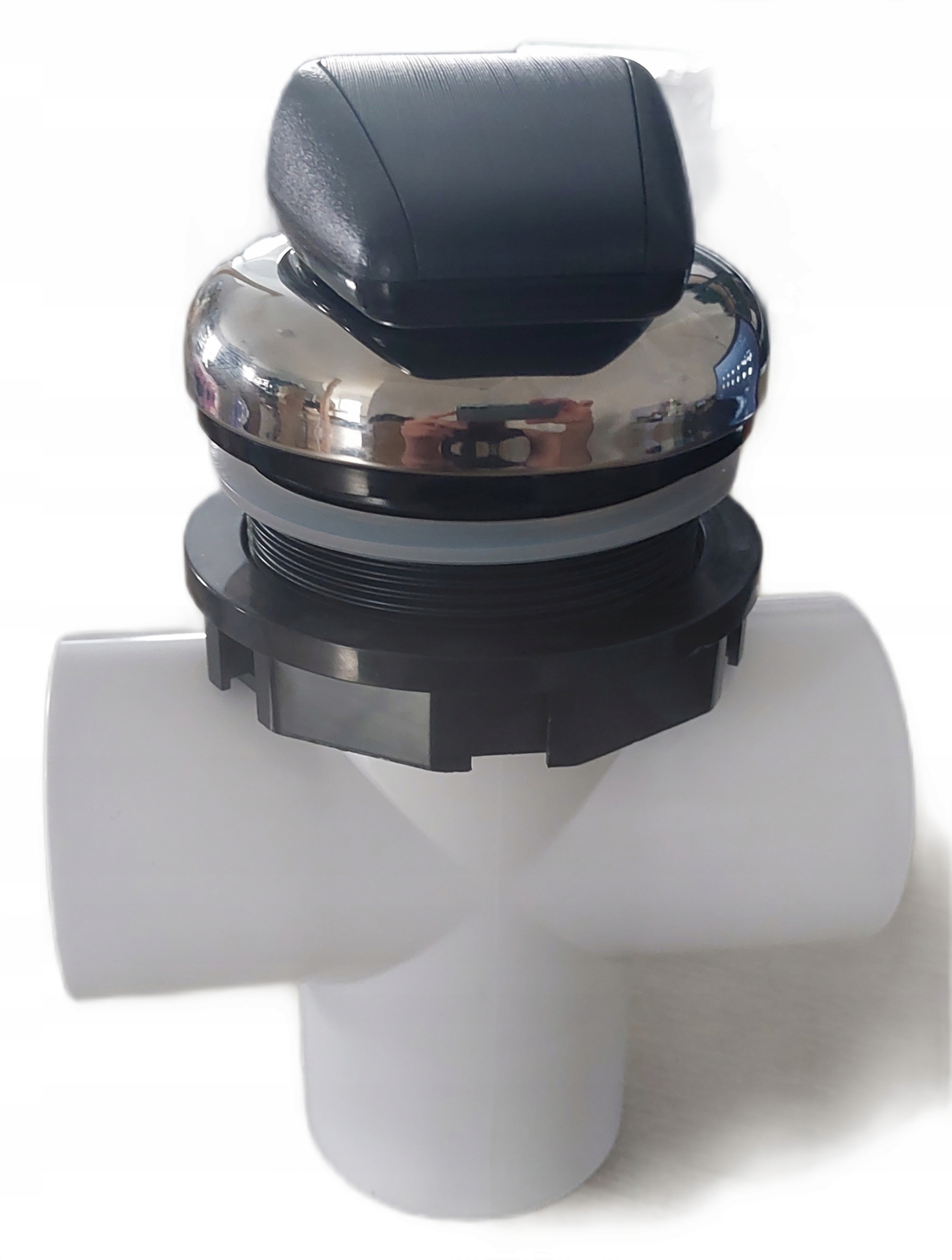 Клапан із трьома з’єднаннями для труби або шланга діаметром 2 дюйми (60 мм), нижнє з’єднання для під’єднання зливу від насоса, бічні з’єднання для відводу до розподільників води.