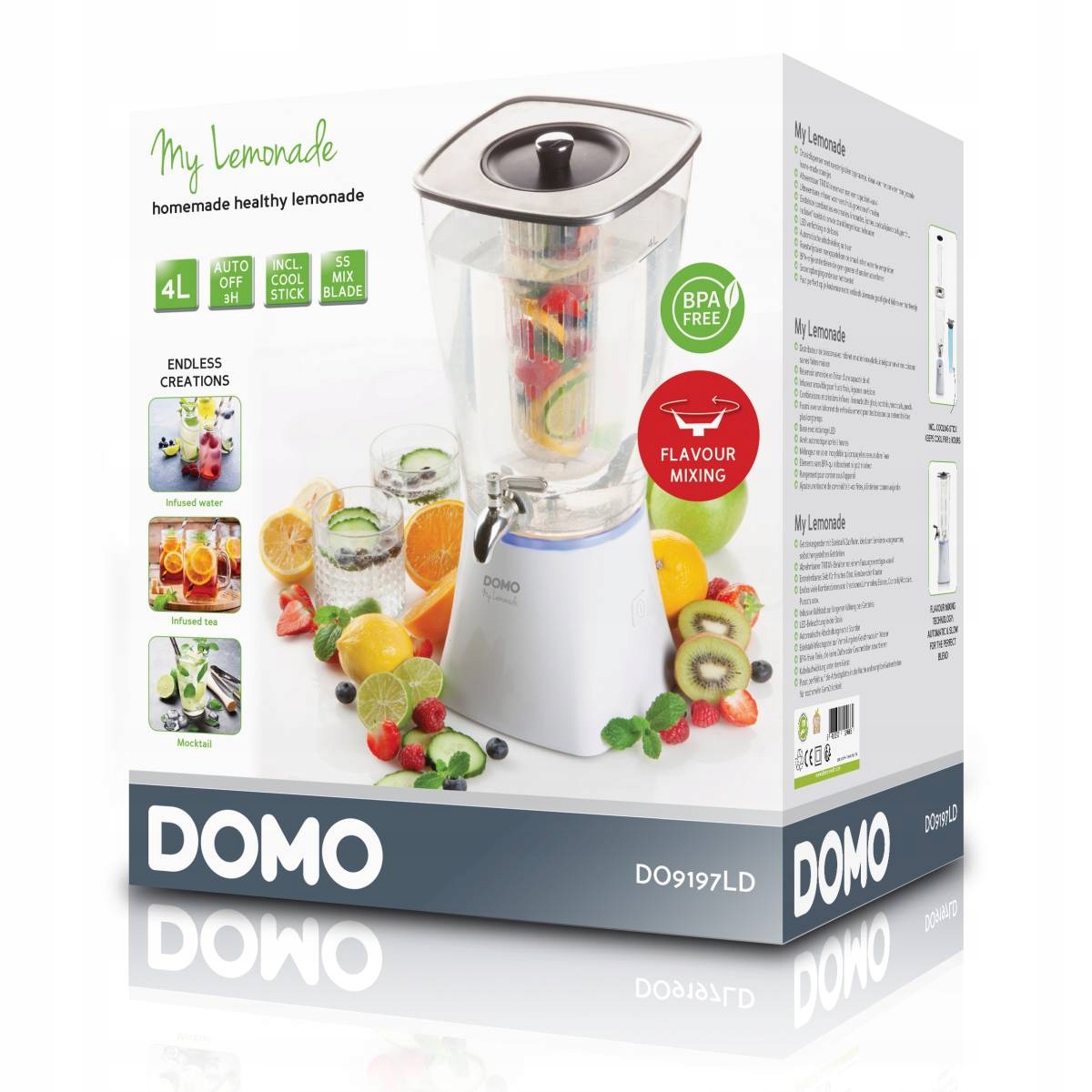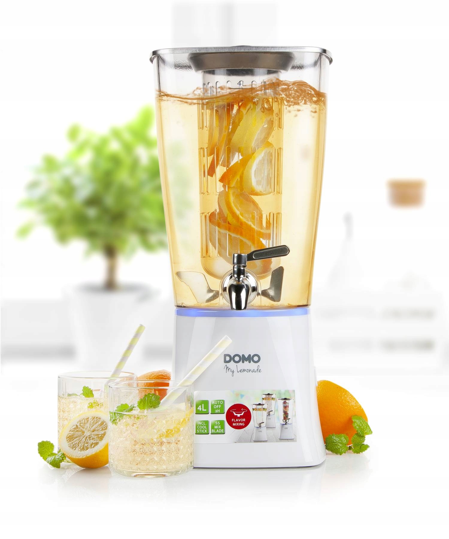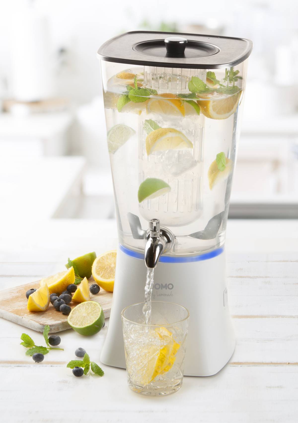 У приготуванні власного лимонаду немає нічого складного, просто помістіть свіжі фрукти на свій смак у дозатор зі знімною решіткою, наповніть ємність водою та почніть перемішувати. Потім Domo DO9197LD самостійно подбає про змішування смаків. Якщо ви любите холодний лимонад, ви можете охолодити напій за допомогою морозильної трубки, яка входить в комплект. Диспенсер для напоїв також слугуватиме для дітей саморобним лимонадом, за допомогою якого, завдяки зручному зливному крану, ви забезпечите здоровий режим пиття для дітей. Приготуйте смачний домашній лимонад з цитрусовими, м’ятою і невеликою кількістю тростинного цукру або меду. Використання пристрою дуже безпечно навіть для маленьких дітей. Користування пристроєм Помістіть свіжі фрукти в знімну внутрішню решітку, занурте їх у резервуар для прісної води та запустіть міксер кнопкою збоку. Разом з фруктами в піднос можна додати лід, м'яту, мед та інші інгредієнти. Завдяки безперервному помішенню всі аромати змішуються з водою по всьому об'єму ємності.