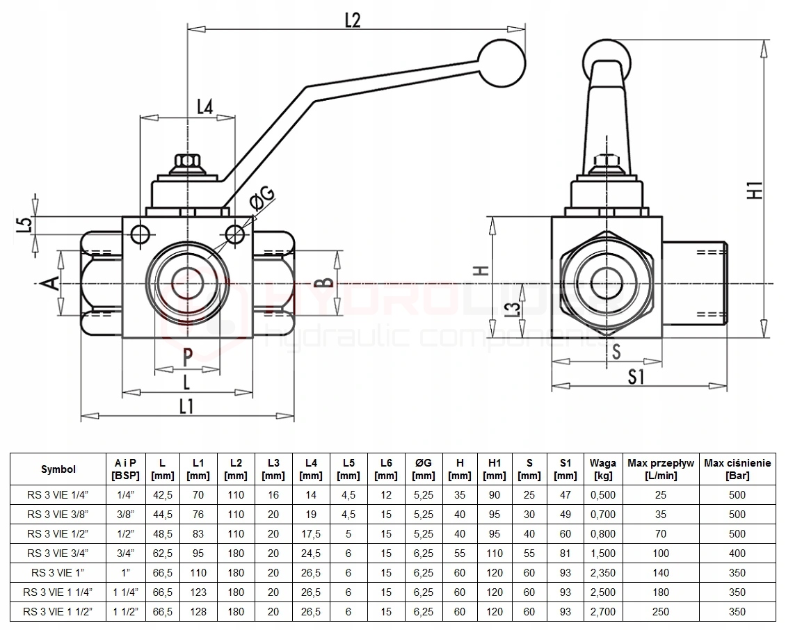 КРАН КУЛЬОВИЙ 3/2 GW 1 1/2 250 Л 350 бар ГІДРОЛІДЕР