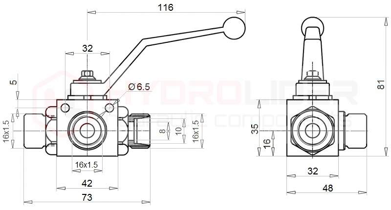 КРАН КУЛЬОВИЙ 3/2 M16x1.5 20L 350bar ГІДРОЛІДЕР