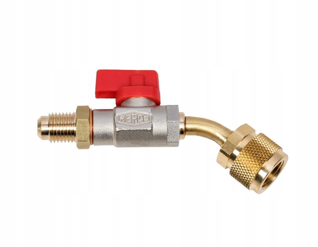 Кран кульовий гнутий CA-1/4”-5/16-R-45° для R32/R410 REFCO червоний