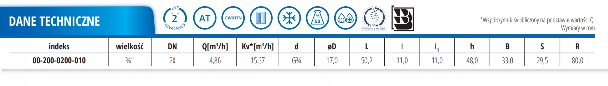 Клапан призначений для роботи при максимальний робочий тиск 16 бар. Максимальна робоча температура 120°C, мінімальна - 30°C.