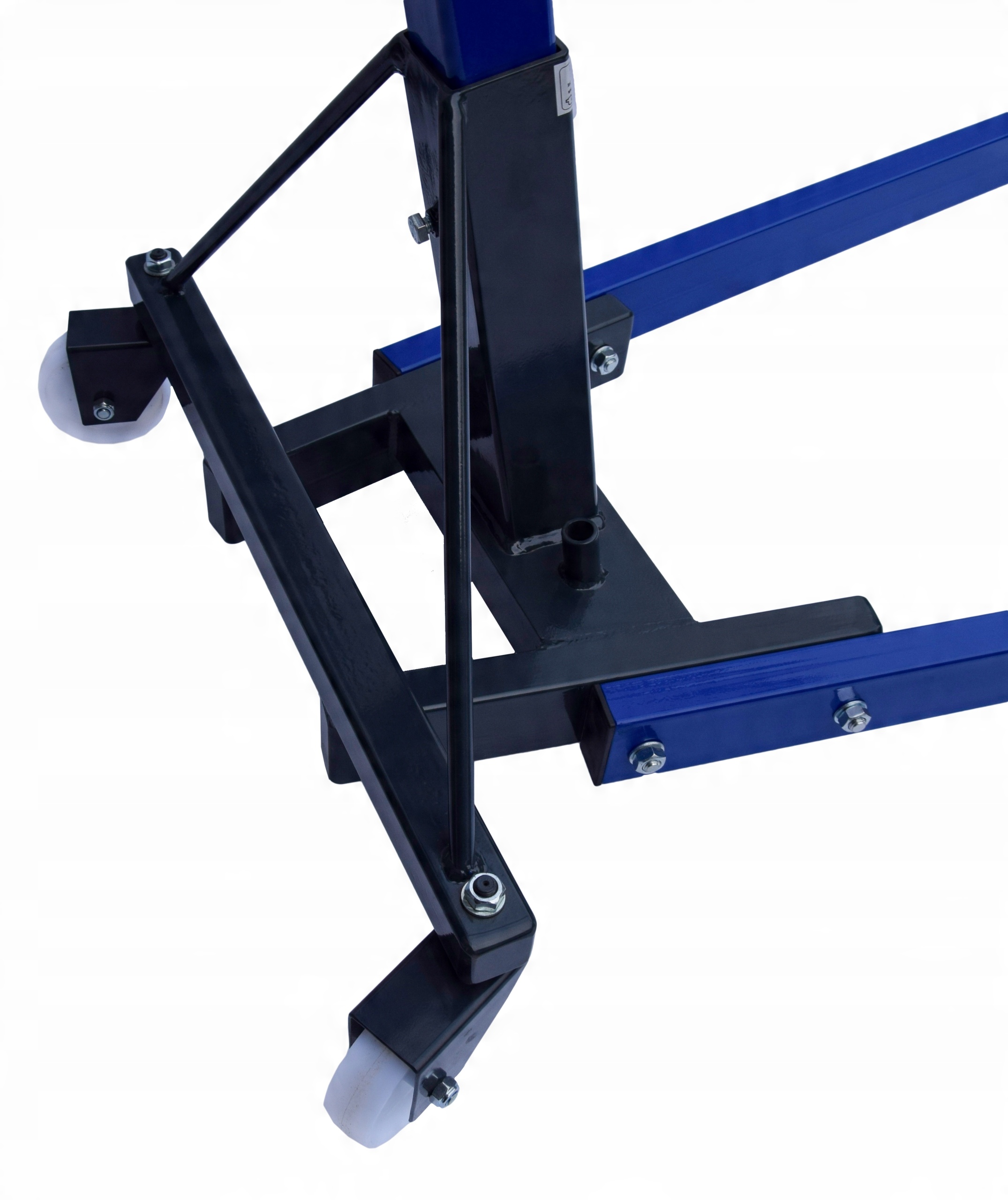 Посилена конструкція із замкнутих товстостінних профілів (4 мм) у поєднанні з міцною польською гідравлікою – основні переваги представленого пристрою. Кран використовується в автомайстернях для витягування двигунів і коробок передач, а також в промисловості для переміщення важких предметів, пристроїв і т.д.