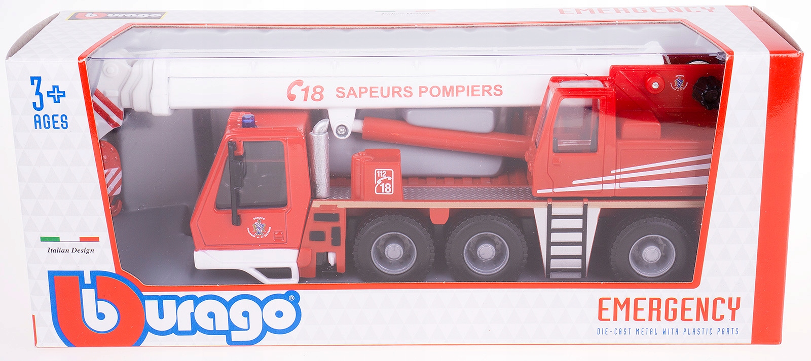 FIRE BRAND CRANE (service départemental d'incendie et de secours Sapeurs Pompiers) МОДЕЛЬ BBURAGO з ЧЕРВОНОГО МЕТАЛУ В МАСШТАБІ 1:50