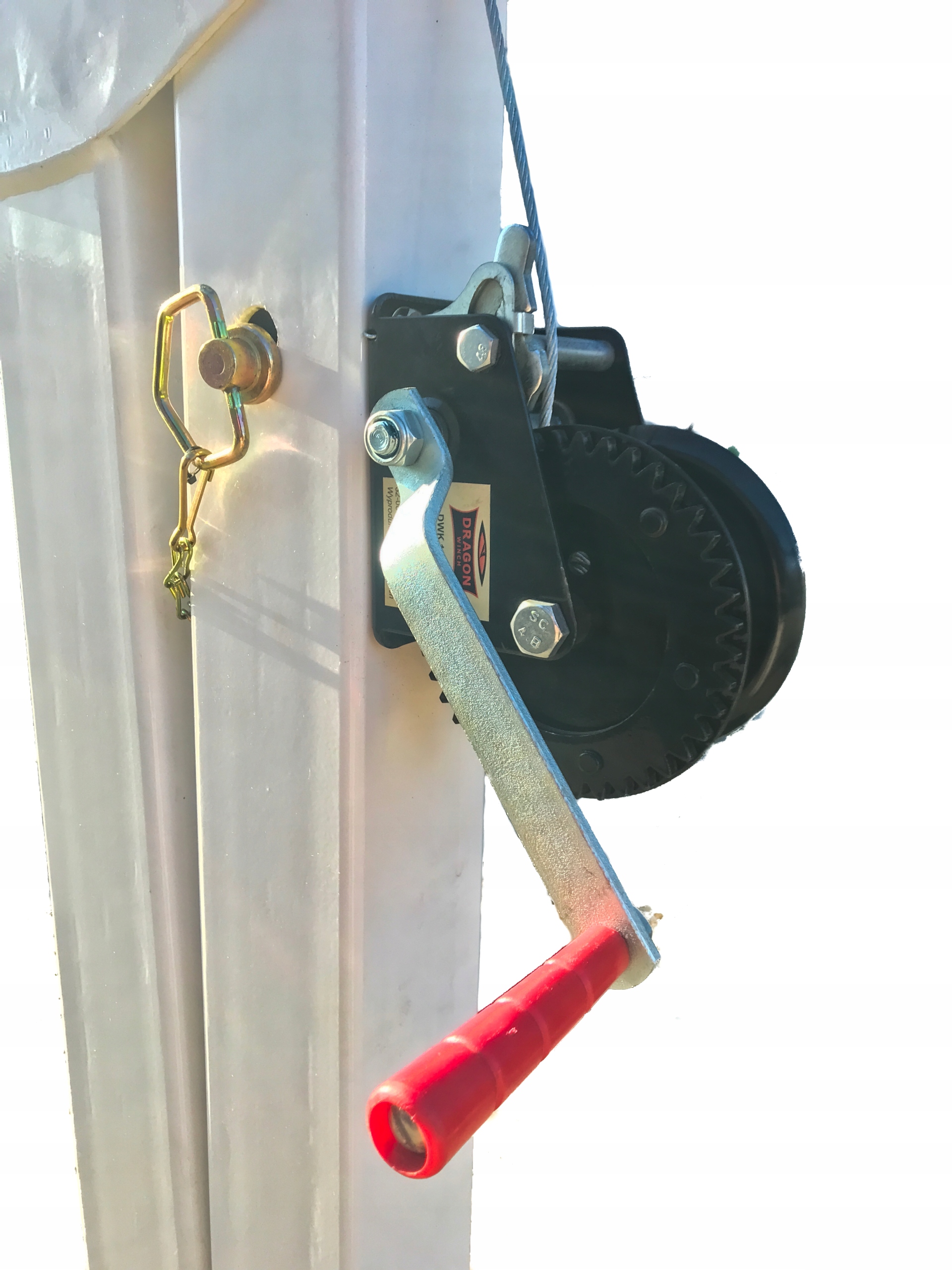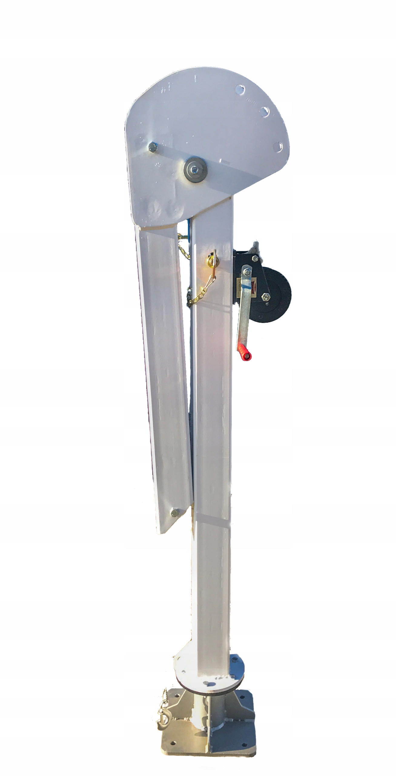 Кран має можливість встановлювати висоту рука в трьох положеннях. Оснащений ручною канатною лебідкою з гаком на кінці.
