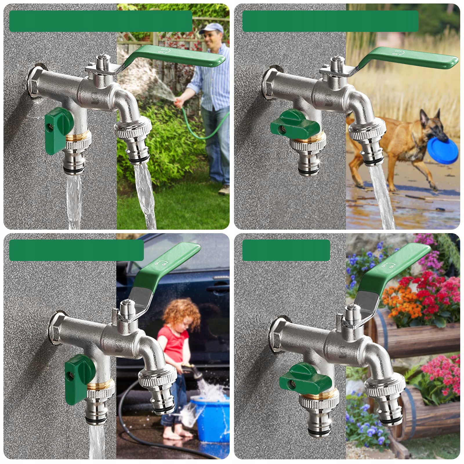 Цей набір морозостійких садових кранів діаметром 1/2 дюйма дуже практичний. Він включає не лише подвійний кран, але також 2* гумові ущільнювачі, 2* ущільнювальні кільця, 1* водонепроникний ремінь,