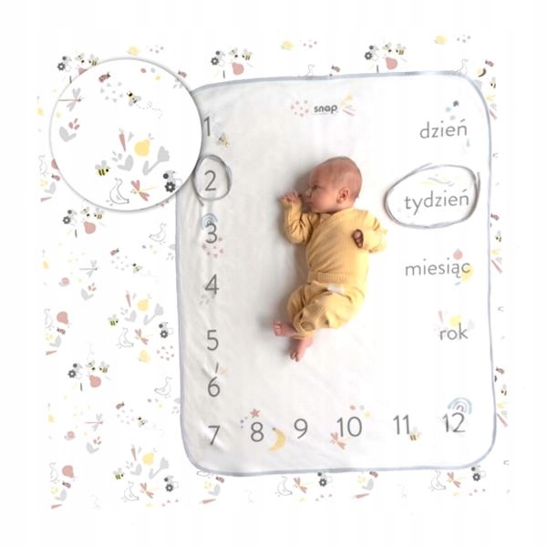 Трактори, гуси, милі сонечка та бджоли - нейтральний, позачасовий мотив села, розміщений на брудно-білій сільській білій фотоковдрі, є мрією як для хлопчиків, так і для дівчаток. Foto-kocyk® - це двостороння ковдра, яка росте з дитиною. Одна сторона використовується для позначення віку малюка, інша - традиційна дитяча ковдра. Пастельні візерунки порадують і дітей, і батьків. Фотоковдра відмінно підійде як елемент лежака для новонародженого, а також ковдри для дошкільнят. У набір входять 2 шнурки для позначення віку малюка та обмежена фотокартка.