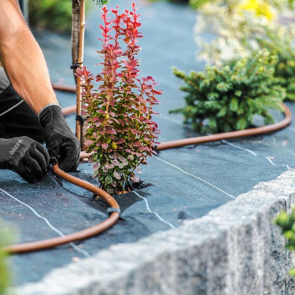 - крапельну лінію з КОМПЕНСАЦІЄЮ тиску коричневого кольору 16 мм, довжиною 100 м з крапельницею кожні 33 см, витратою води 2,0 л/ h від випромінювача