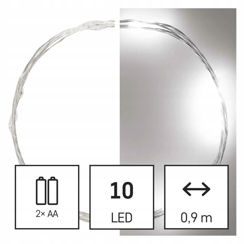 Сріблястий краплеподібний провід 10xLED 0,9 м 2xAA холодний IP20 D3AC06 EMOS