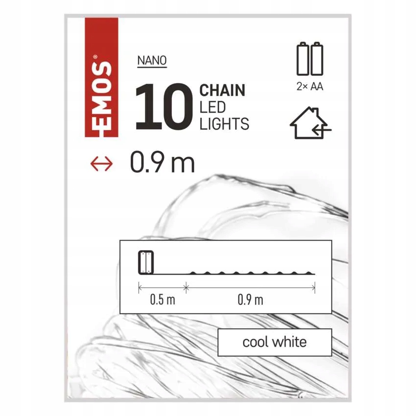 Краплеподібний провід срібний 10xLED 0.9м 2xAA холодний IP20 D3AC06 EMOS