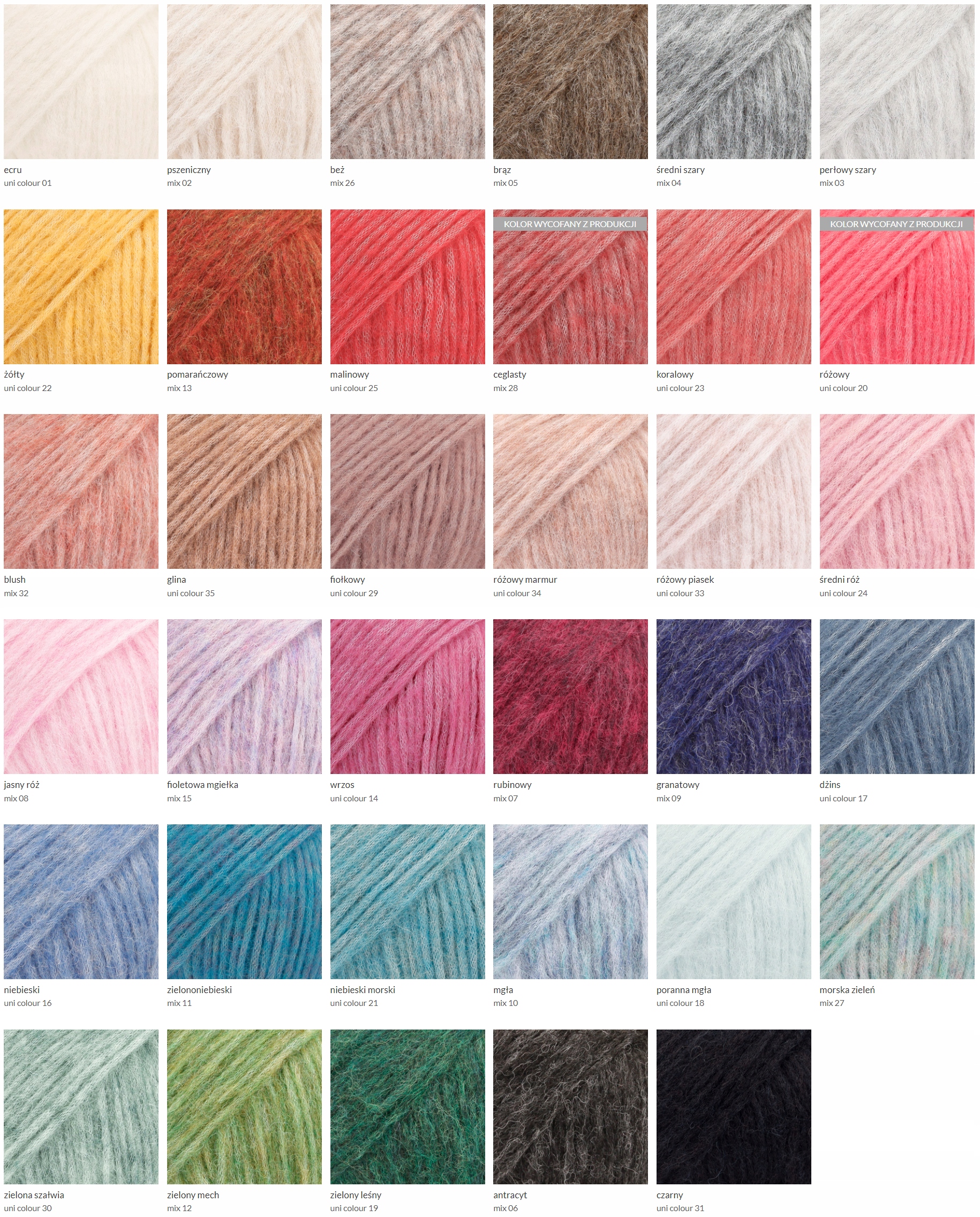 Нова захоплююча "дувна пряжа", суміш м'якої бебі альпаки та теплої та зручної мериносової вовни. Як випливає з назви використовуваної техніки, ця пряжа має унікальну конструкцію: замість прядіння волокна бебі альпаки та вовни мериноса скачуються разом у трубку. Тому одяг, виготовлений із цієї пряжі, приблизно на 30-35% легший, ніж одяг із вовни такої ж товщини, пряденої звичайним способом.