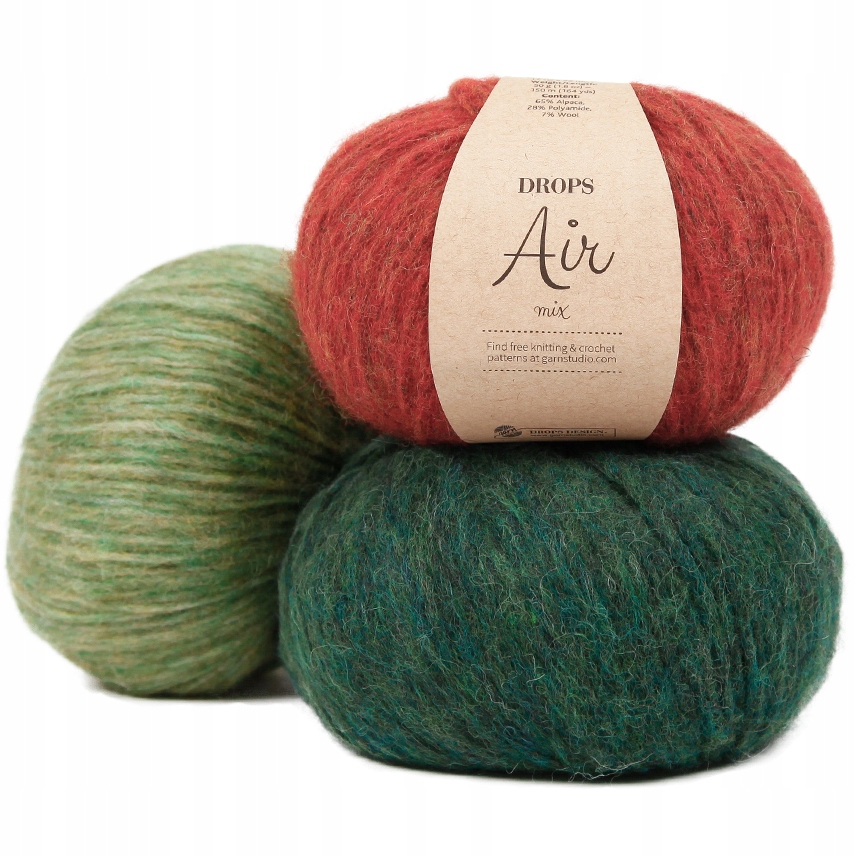 DROPS Air, як випливає з назви. , дуже повітряна пряжа, приємна на шкірі. Він ідеально підходить для аксесуарів, шарфів, светрів зі структурними візерунками та кабелями. Одяг DROPS Air абсолютно не подряпається, а це означає, що його може носити кожен!