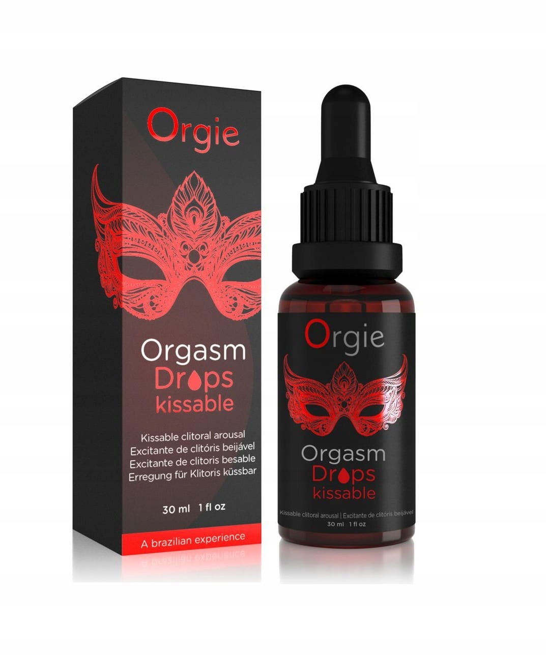 Краплі Orgie Orgasm Drops знаходяться в маленькій скляній пляшці, і їх завжди можна точно відміряти за допомогою піпетки.