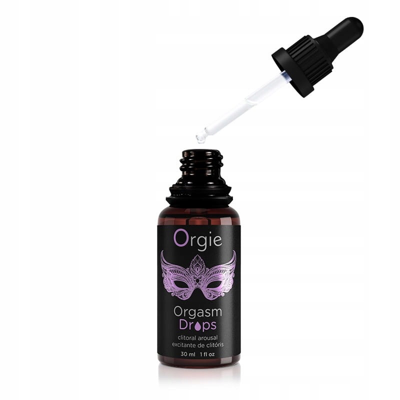 Стимулюючі краплі Orgie Orgasm Drops поставляються в маленькій скляній пляшці, і їх завжди можна точно відміряти піпеткою.