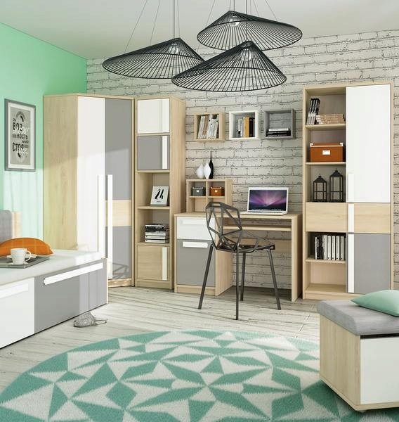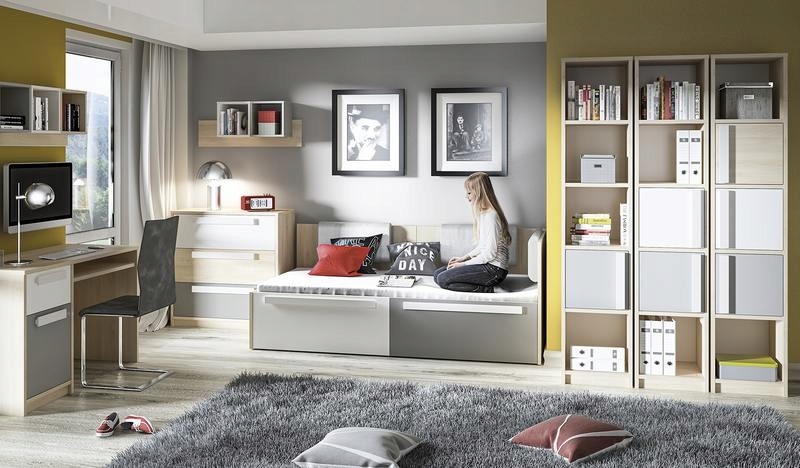 Цікава і модна колірна гамма підійде як для кімнати дівчинки, так і для хлопчика. Корпус з фіордового бука з білими та сірими елементами чудово підійде до будь-якої композиції, забезпечуючи дизайнерський інтер’єр.